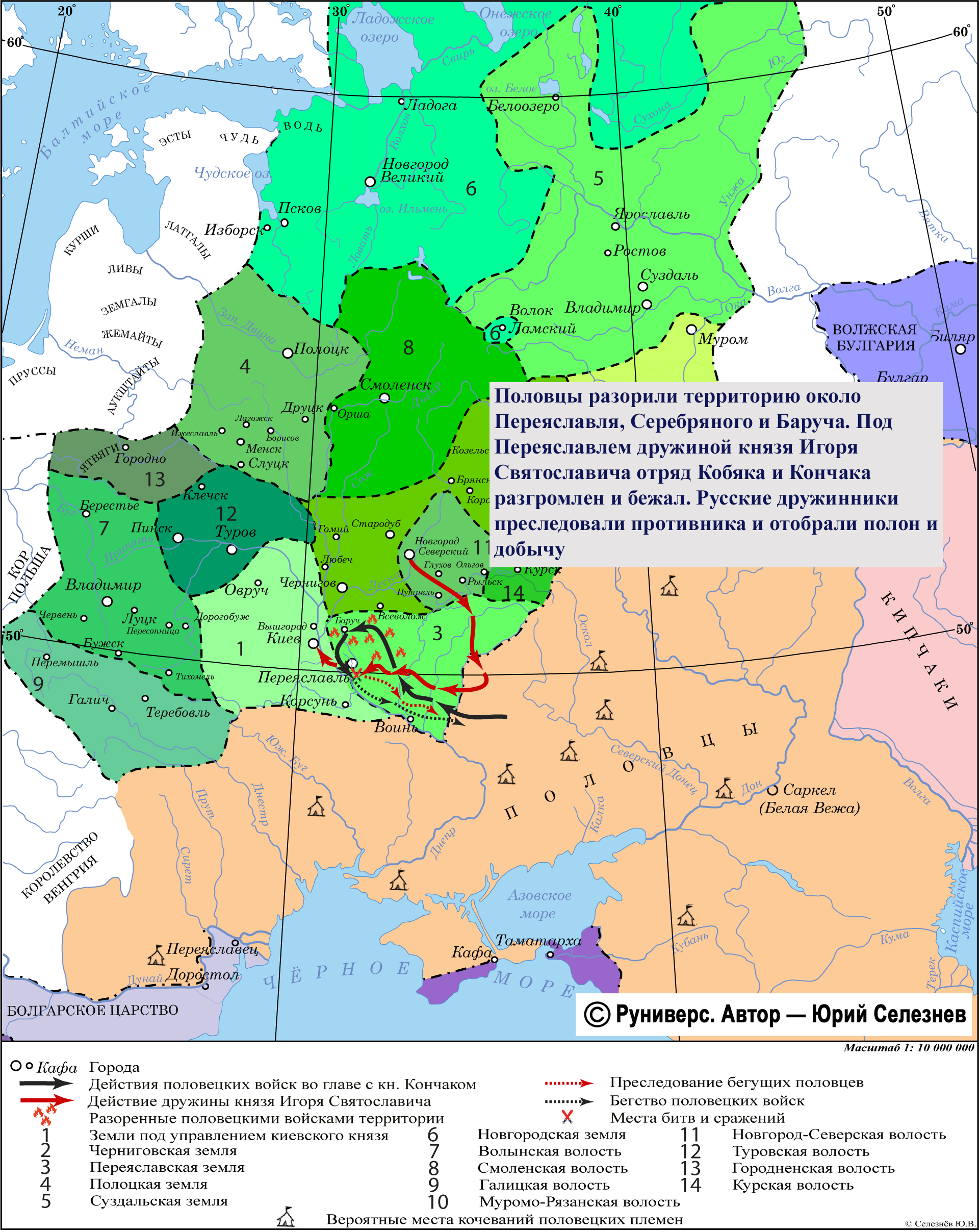 Половцы разорили территорию около Переяславля, Серебряного и Баруча. Под Переяславлем дружиной князя Игоря Святославича отряд Кобяка и Кончака разгромлен и бежал. Русские дружинники преследовали противника и отобрали полон и добычу.