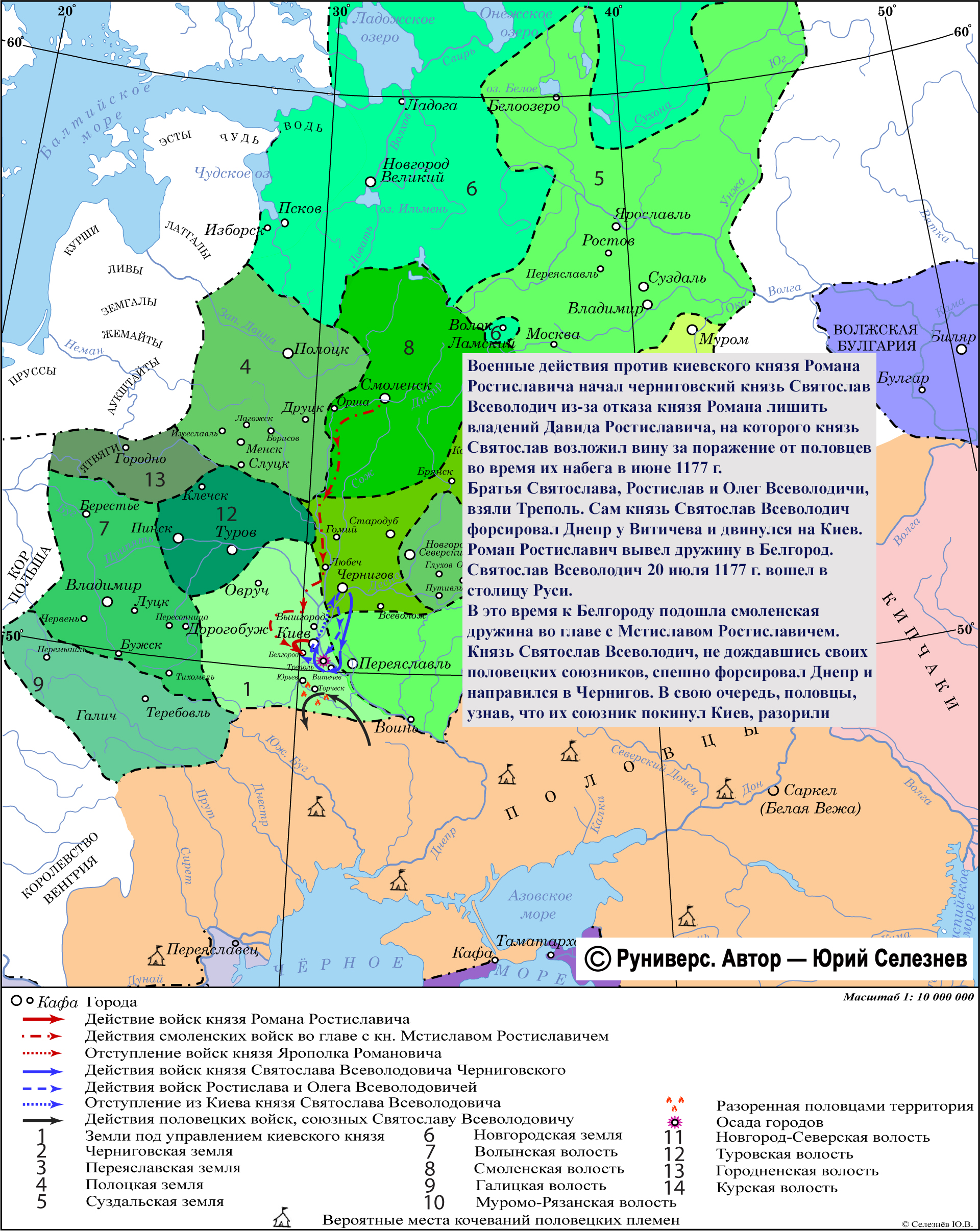 форсировал Днепр у Витичева и двинулся на Киев. Роман Ростиславич вывел дружину в Белгород.