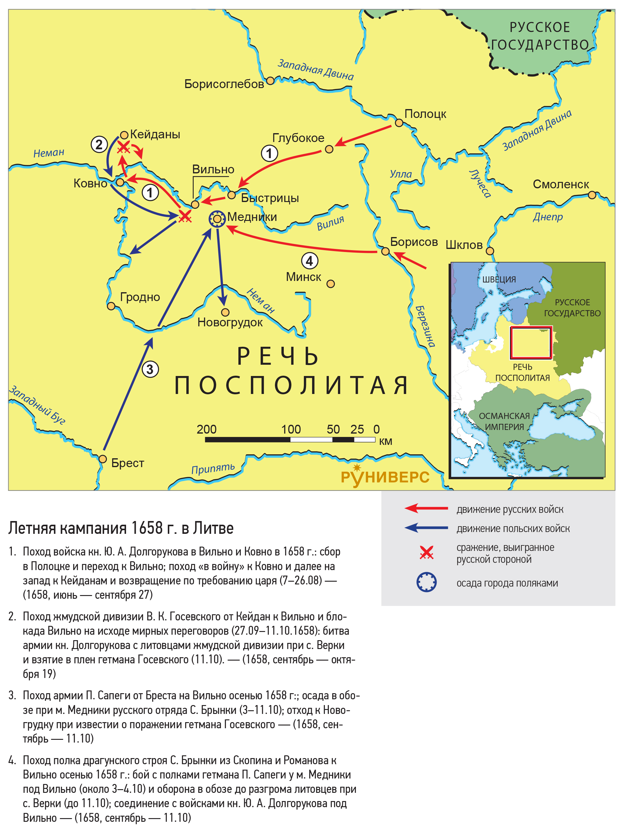 1. Поход войска кн. Ю. А. Долгорукова в Вильно и Ковно в 1658 г.: сбор в Полоцке и переход к Вильно; поход «в войну» к Ковно и далее на запад к Кейданам и возвращение по требованию царя (7–26.08) — (1658, июнь — сентября 27)