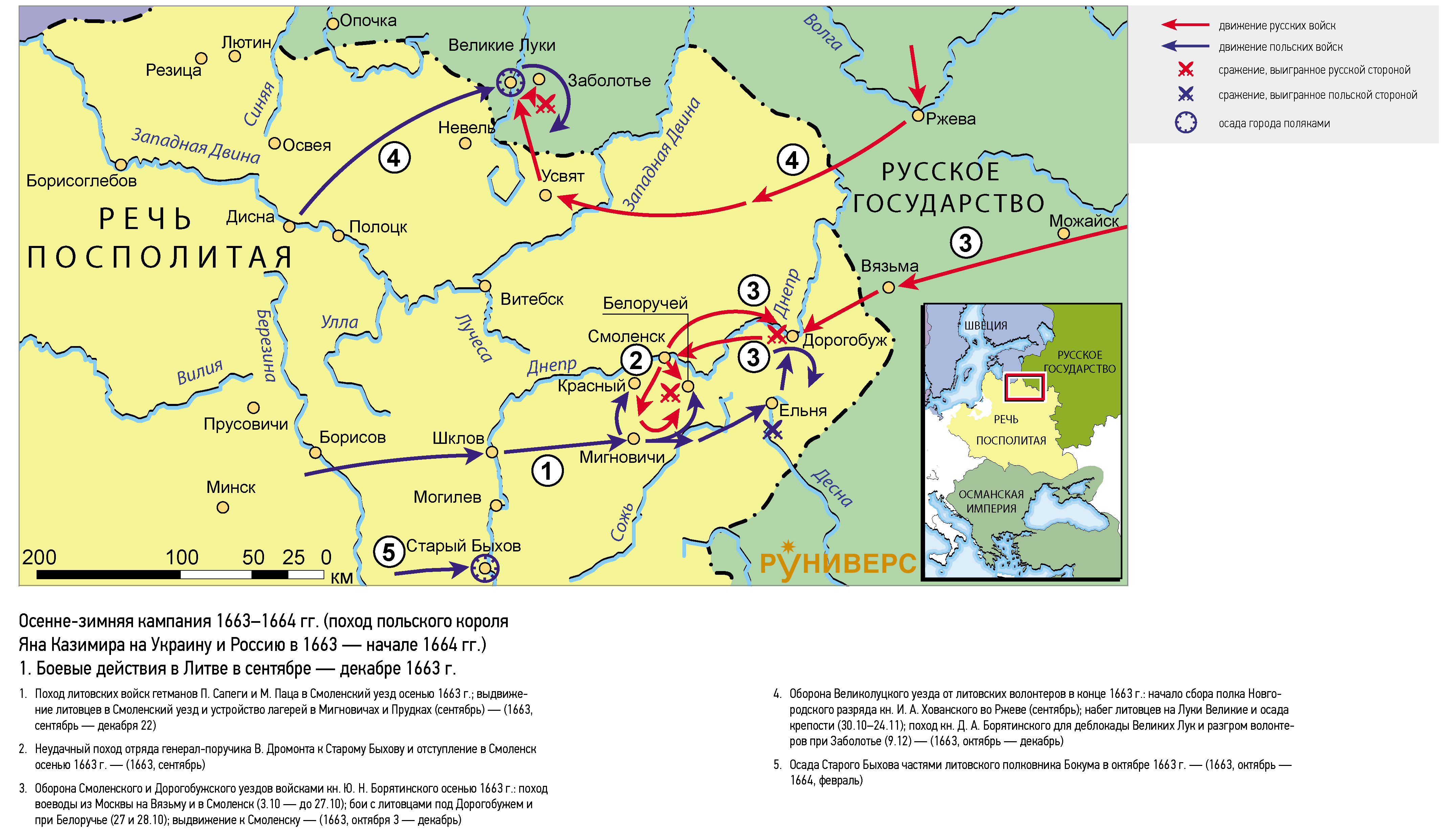 Русско-польская война 1654–1667 гг. Осенне-зимняя кампания 1663–1664 гг. (поход польского короля Яна Казимира на Украину и Россию в 1663 — начале 1664 гг.) 1. Боевые действия в Литве в сентябре — декабре 1663 г.