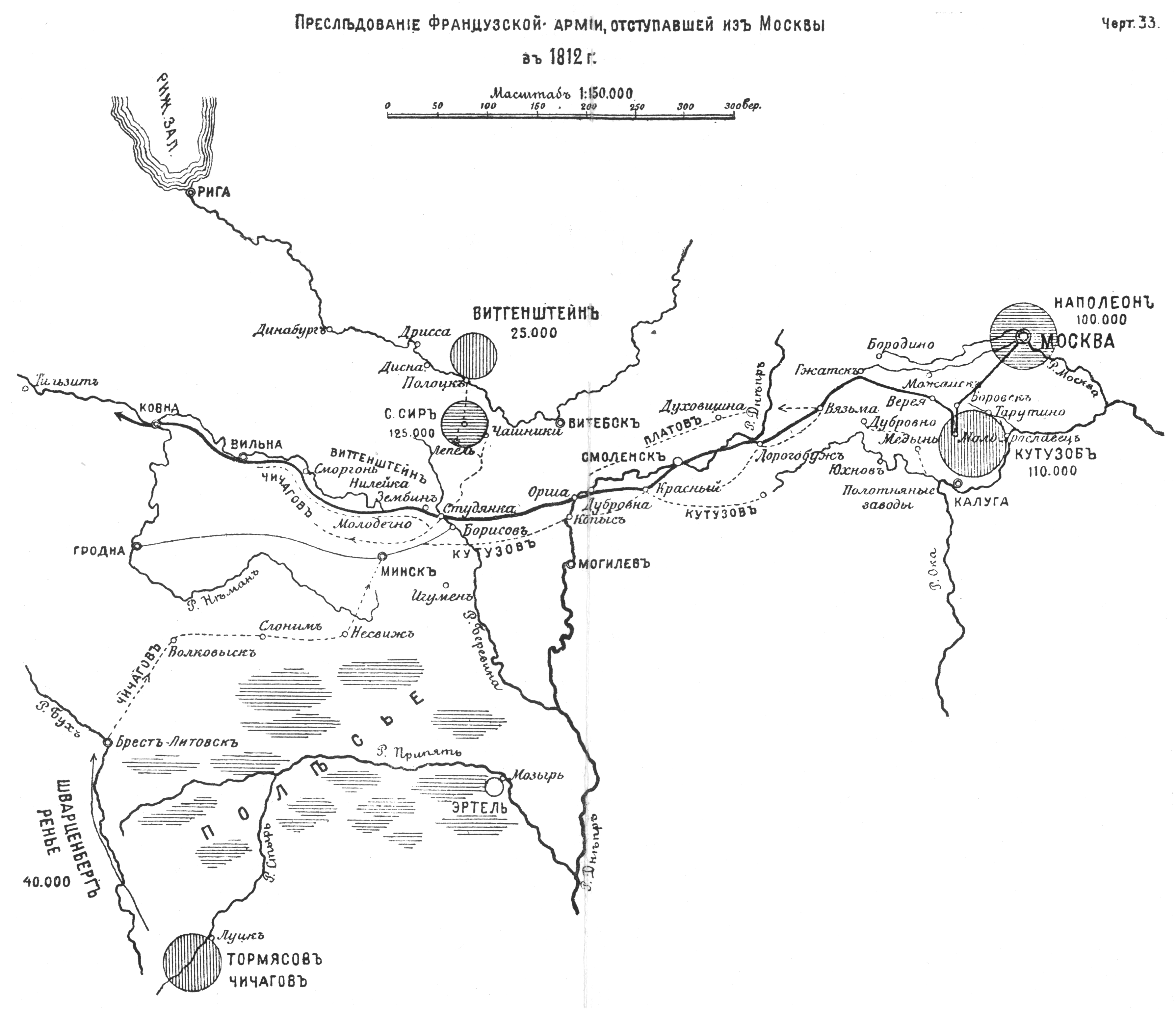 Путь отступления Наполеоновских войск и движение русских от Березины