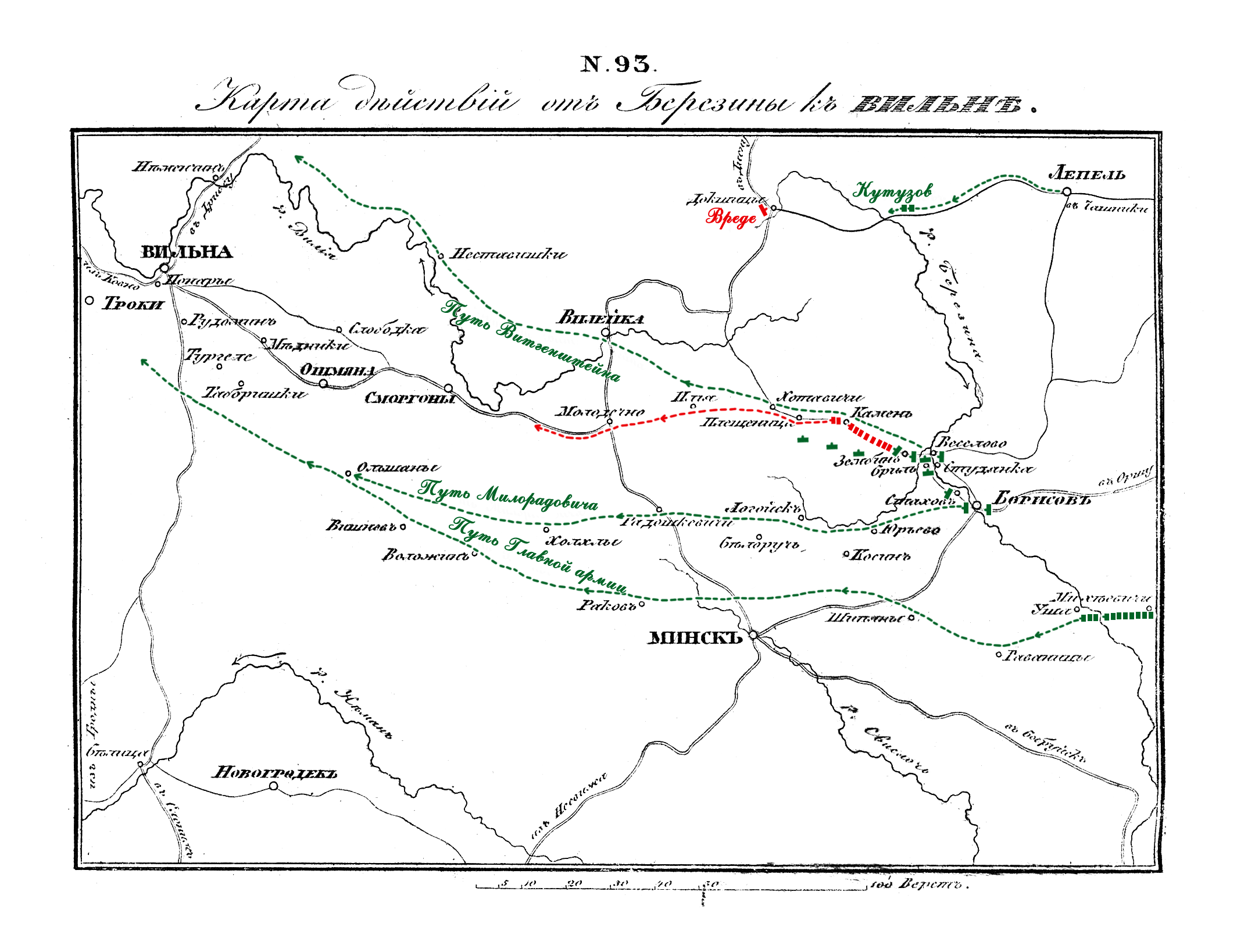Путь отступления Наполеоновских войск и движение русских от Березины