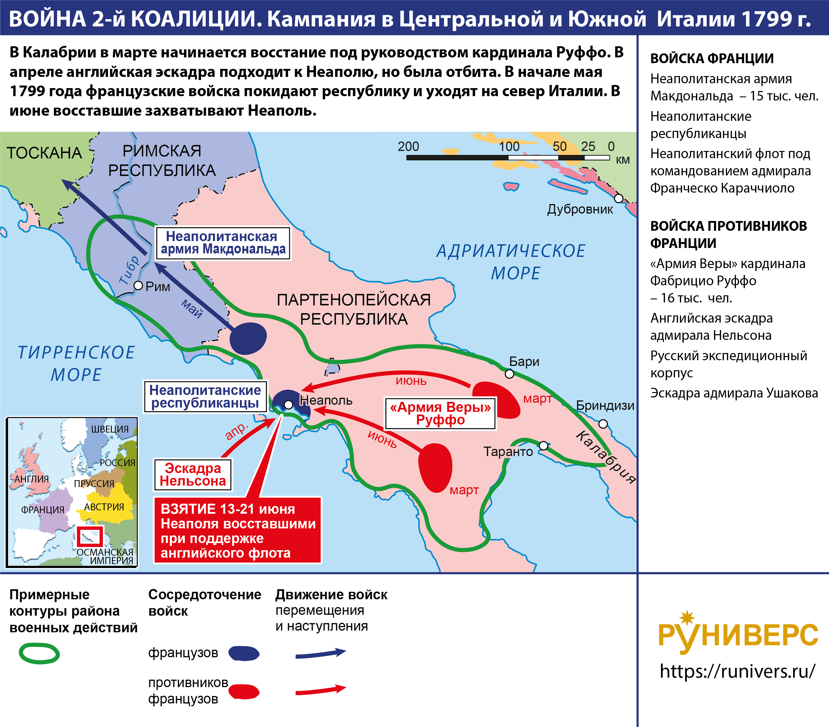 Война Второй антифранцузской коалиции 1798–1802 гг. Кампания в Центральной и Южной Италии в 1799