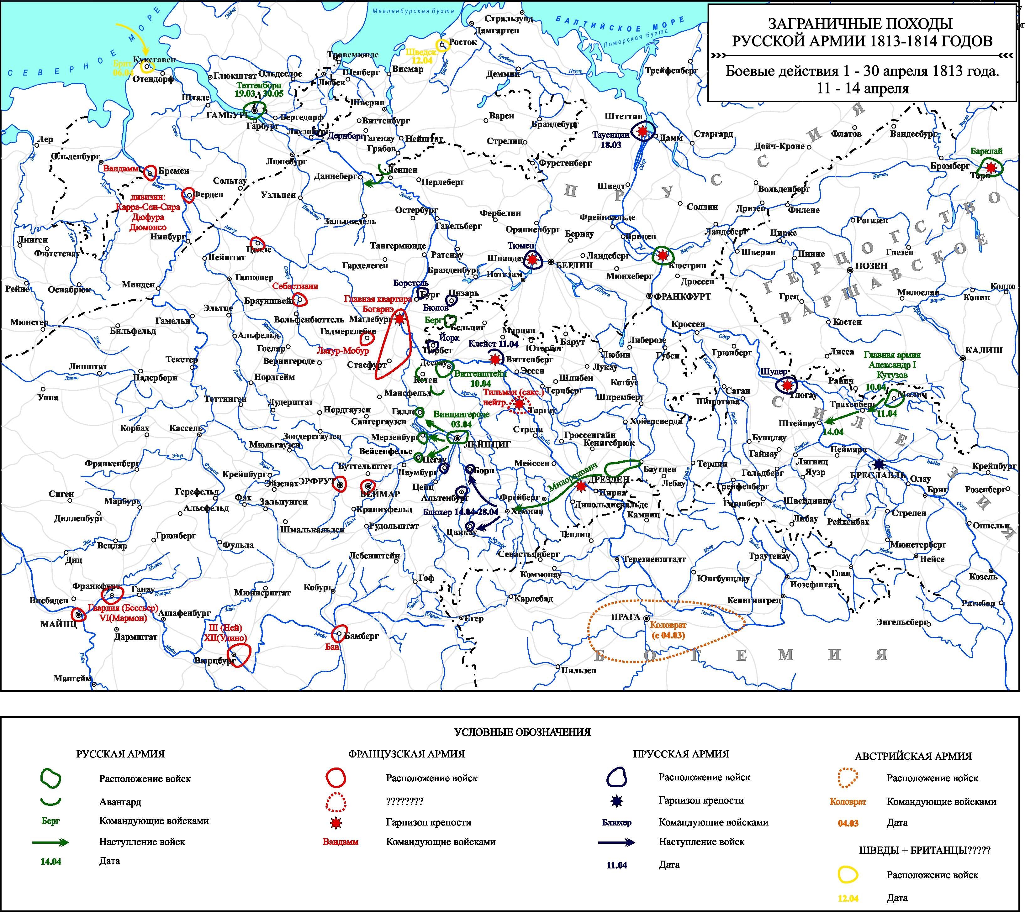 Заграничные походы Русской армии 1813-1814 гг. Положение на 21 апреля 1813 г.