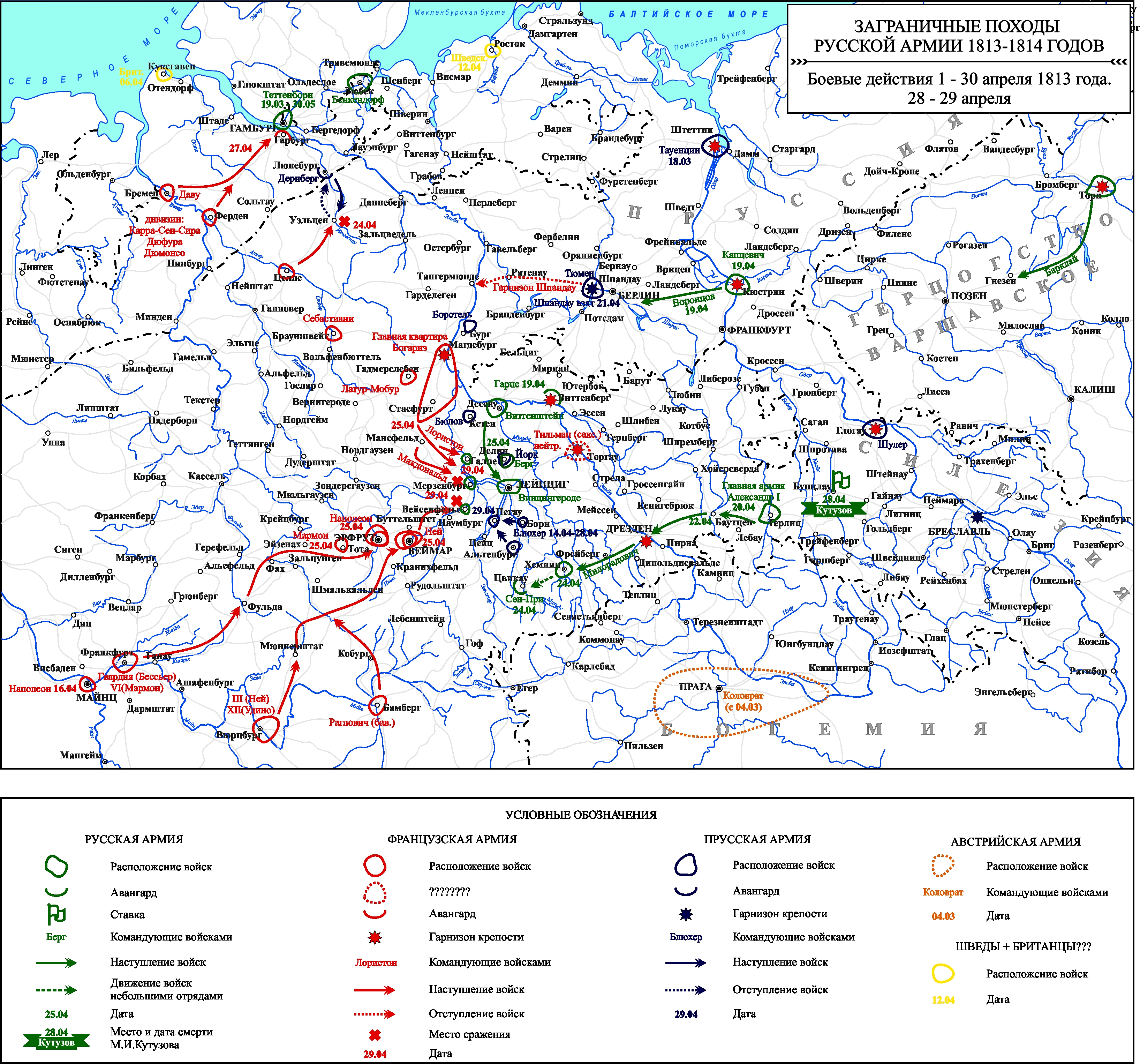 Заграничные походы Русской армии 1813-1814 гг. Положение на 21 апреля 1813 г.