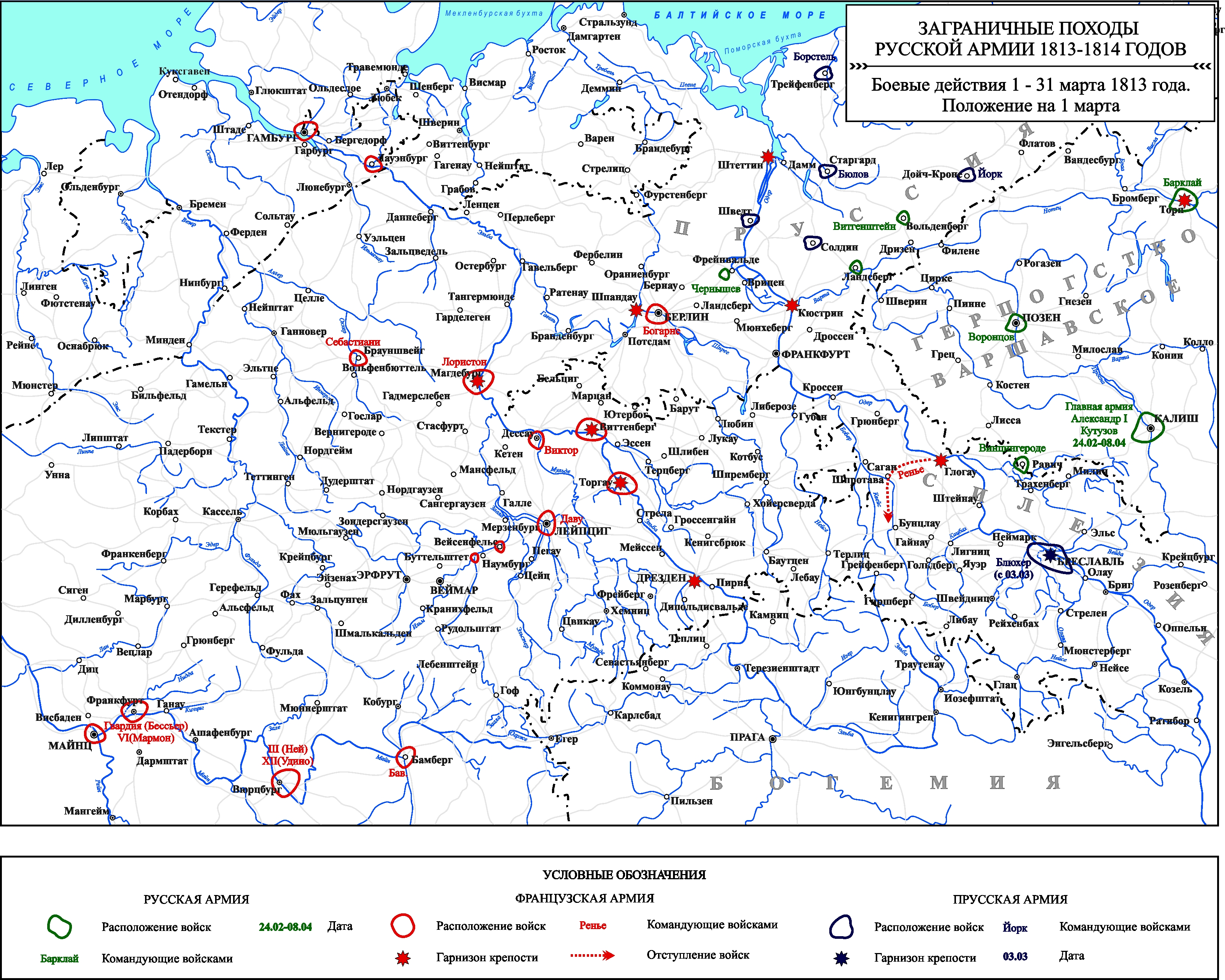 Заграничные походы Русской армии 1813-1814 гг. Положение на 10 марта 1813 г.
