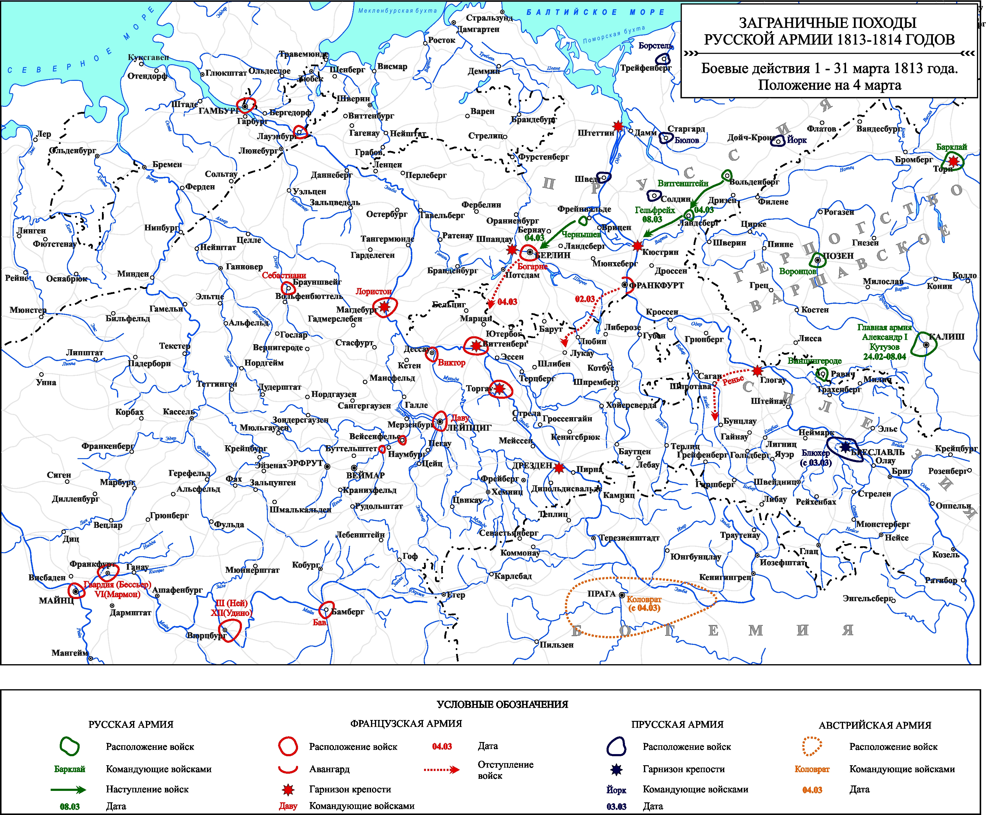 Заграничные походы Русской армии 1813-1814 гг. Положение на 4 марта 1813 г.