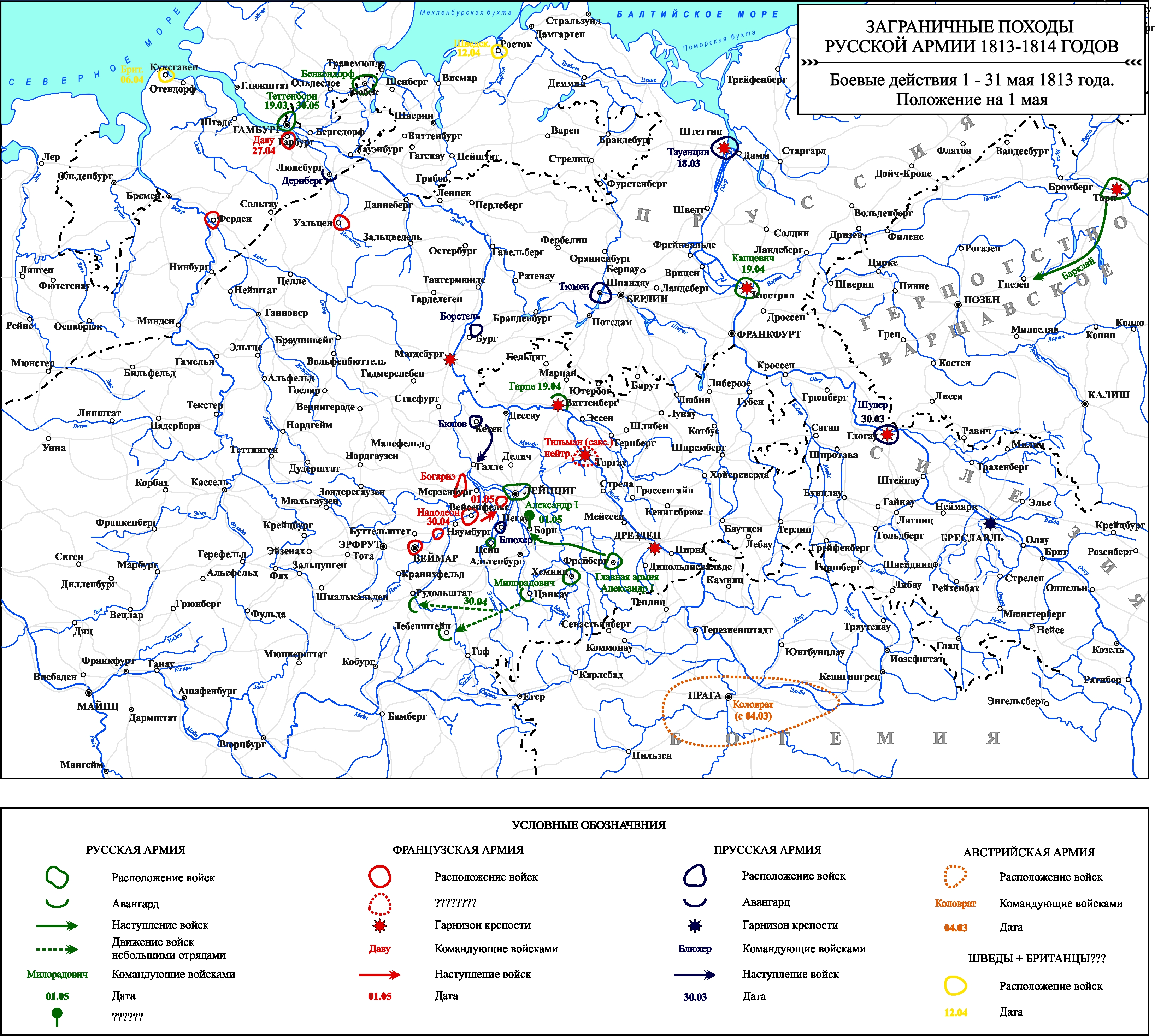 Заграничные походы Русской армии 1813-1814 гг. Положение на 1 мая 1813 г.