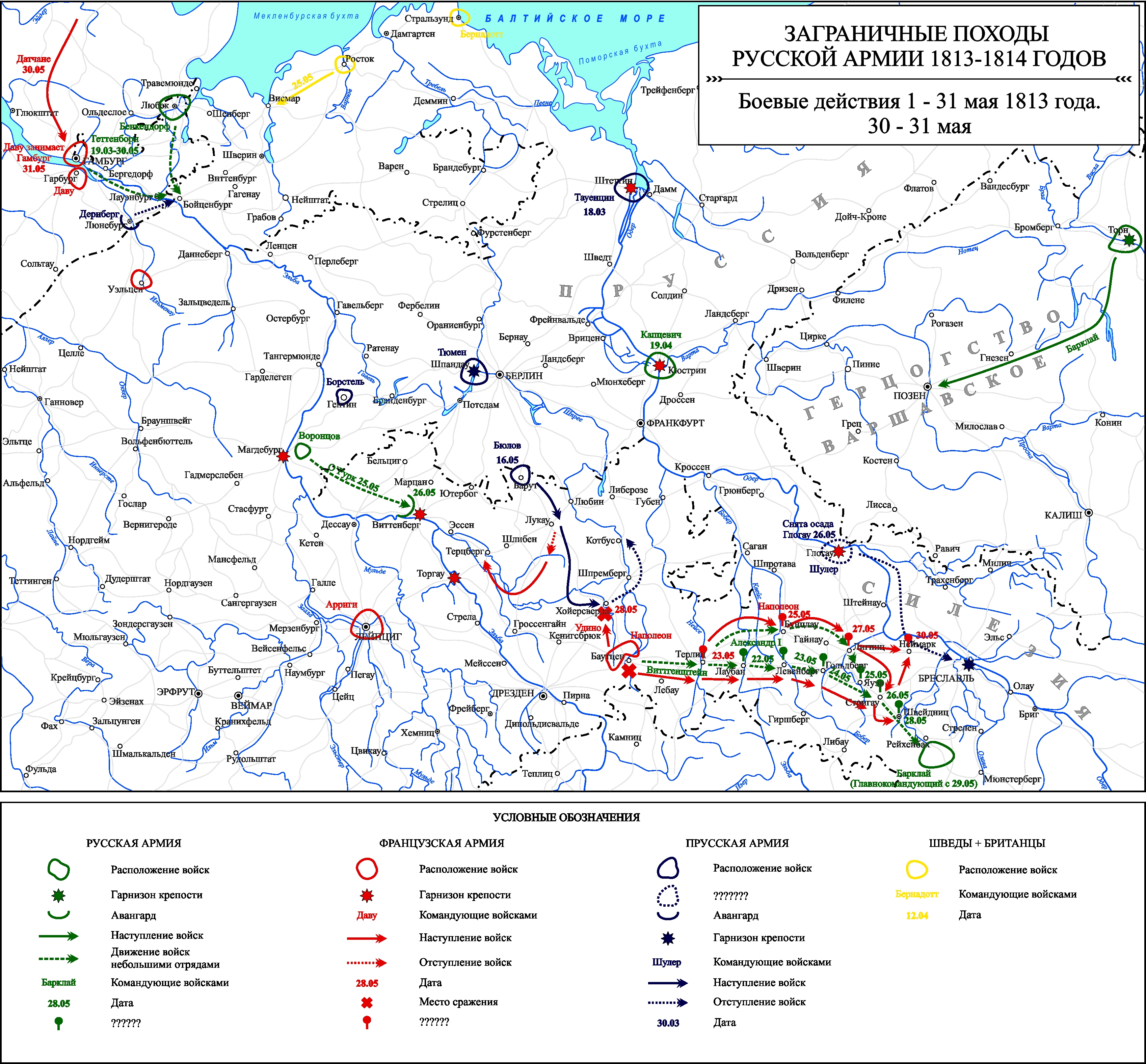 Заграничные походы Русской армии 1813-1814 гг. Положение на 30-31 мая 1813 г.