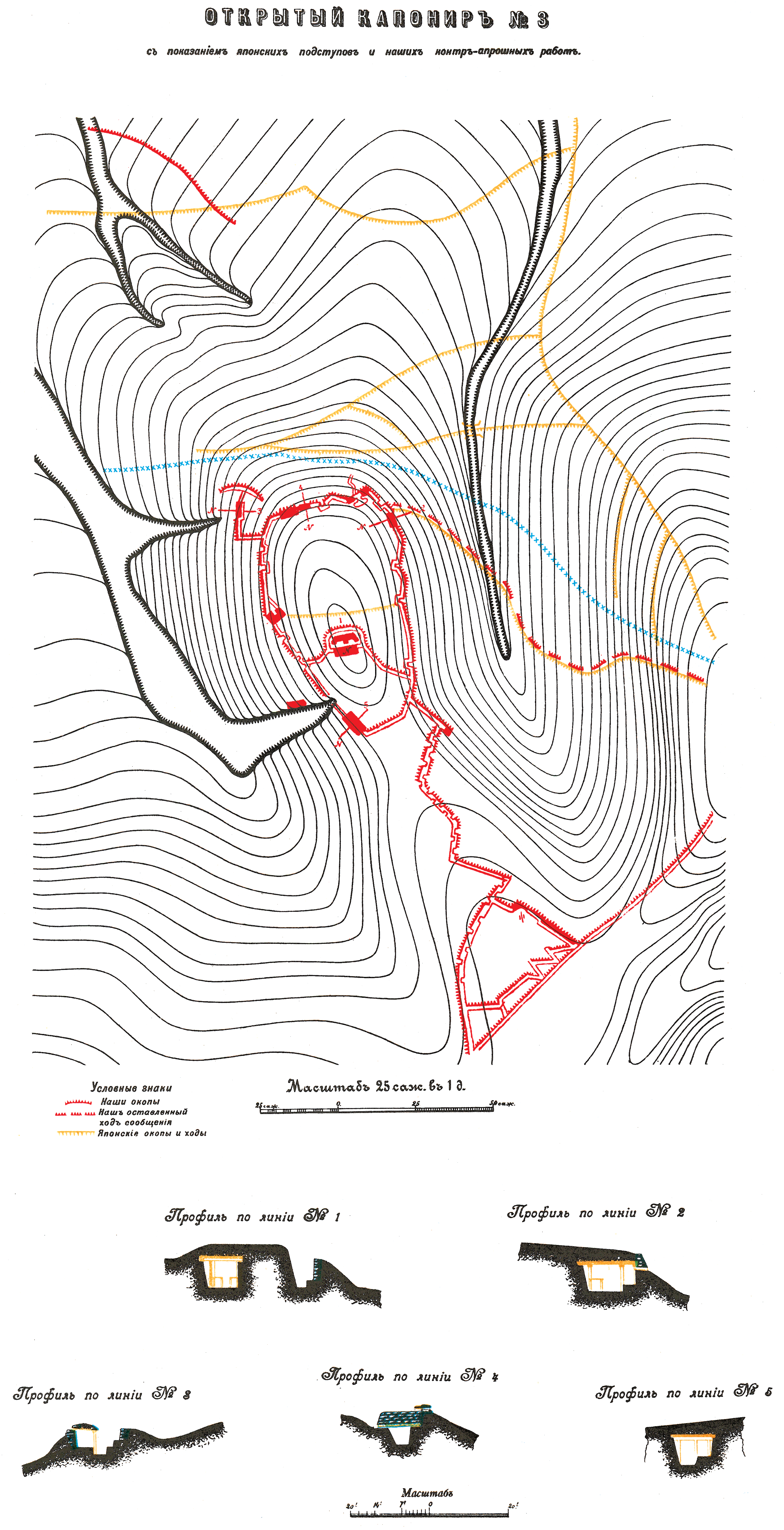 Открытый капонир №3 с показанием японских подступов и наших контр-апрошных работ