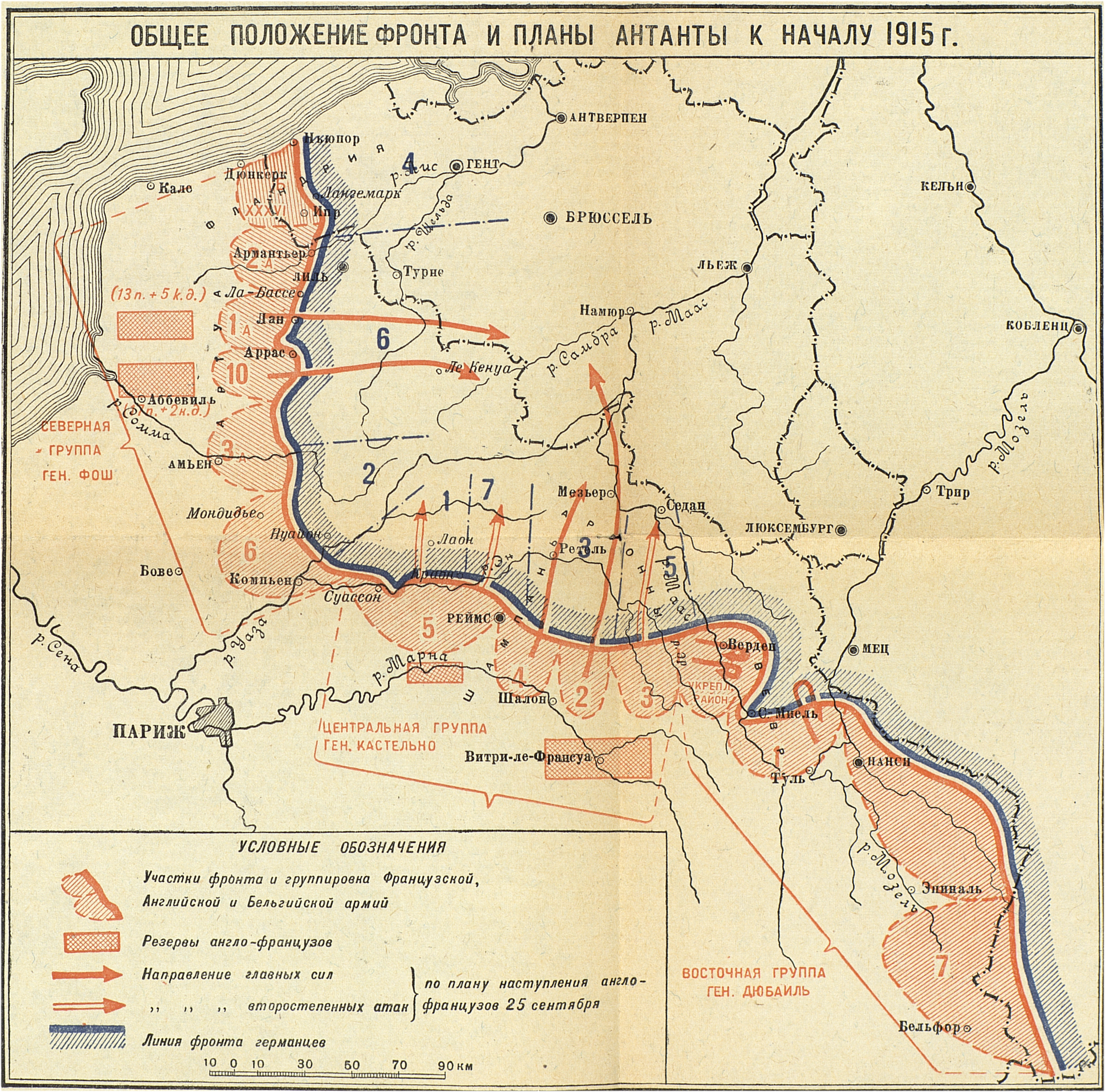 Кампания 1915 года. Французский театр. Общее положение фронта и планы Антанты к началу 1915 года