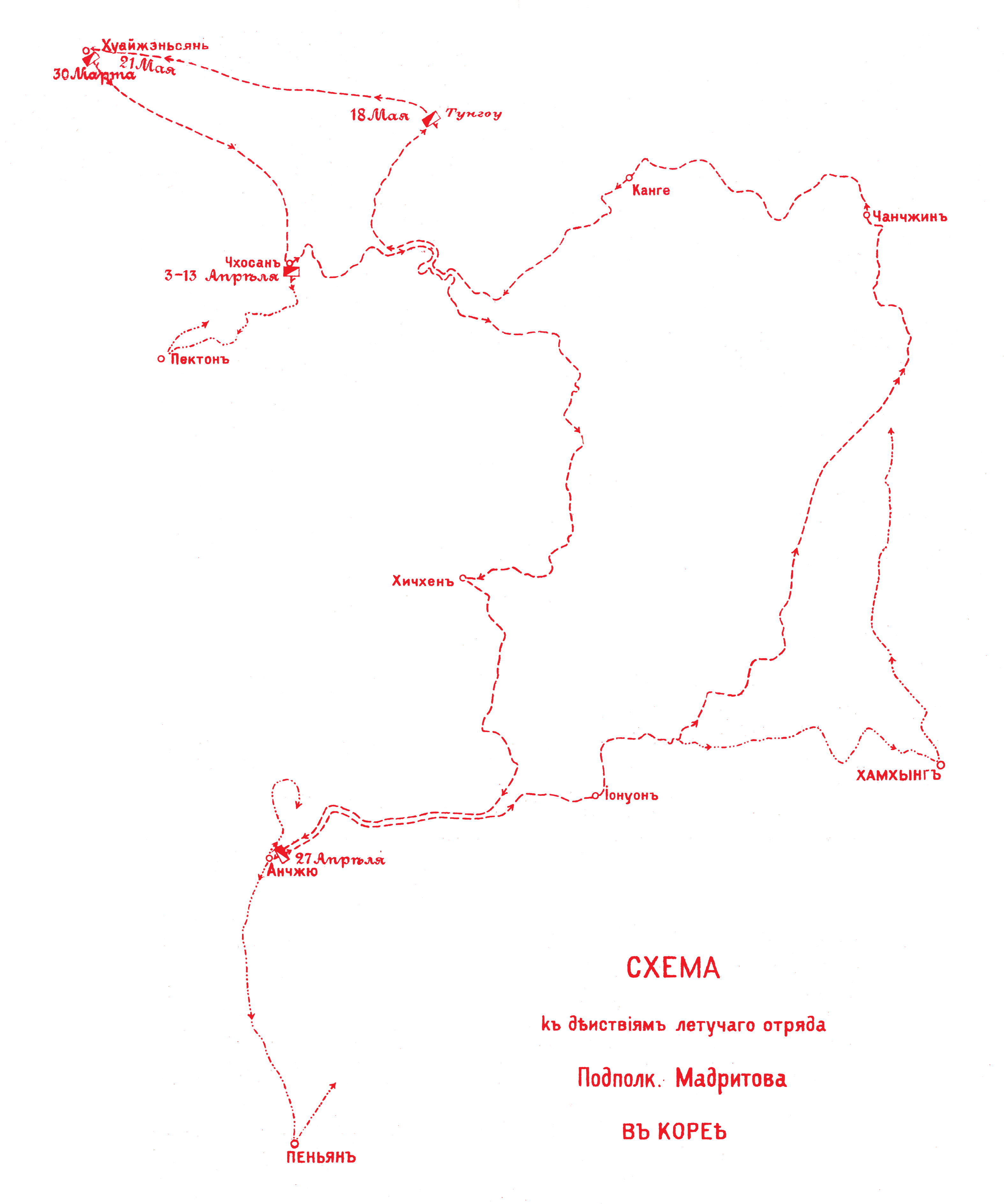 Схема к действиям летучего отряда Подполковника Мадритова в Корее