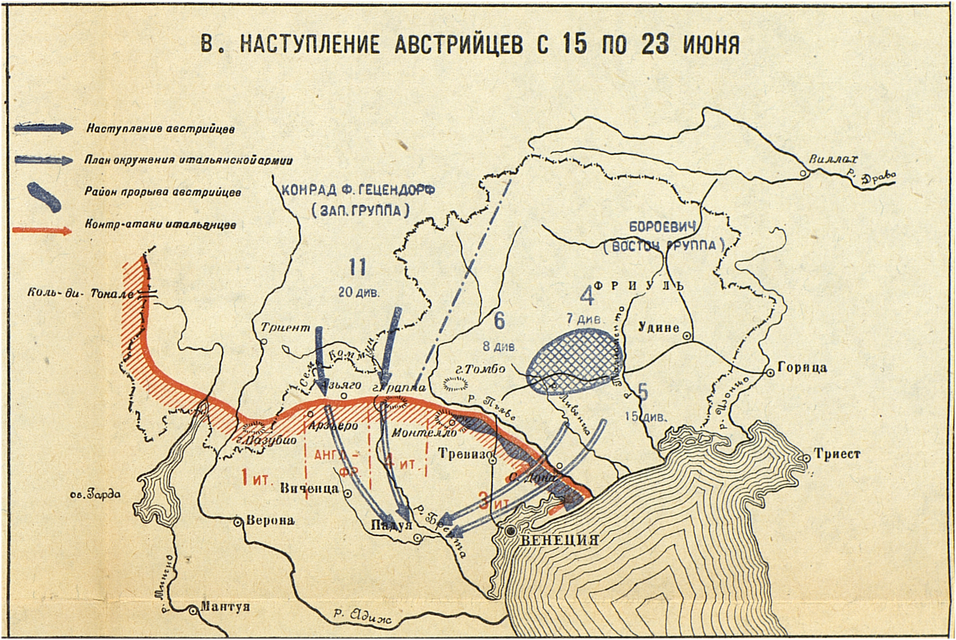 Кампания 1917 года. Итальянский театр. Кампания 1917-1918 годов. Наступление австрийцев с 15 по 23 июня 1918 года