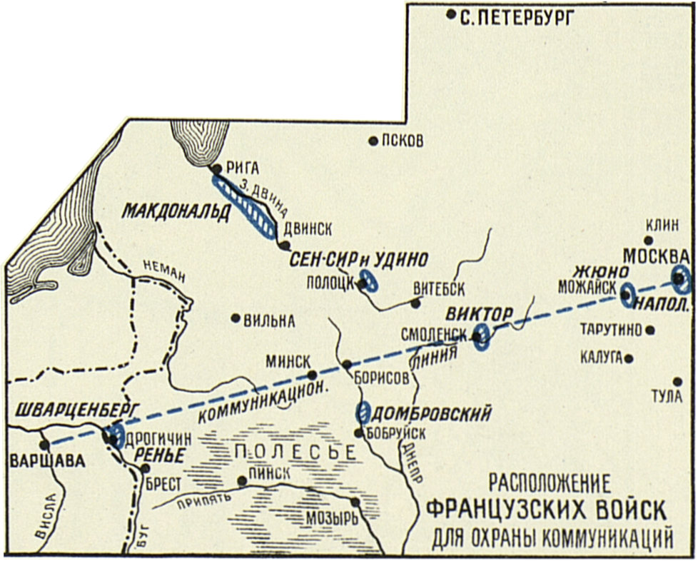 Расположение французских войск для охраны коммуникаций.