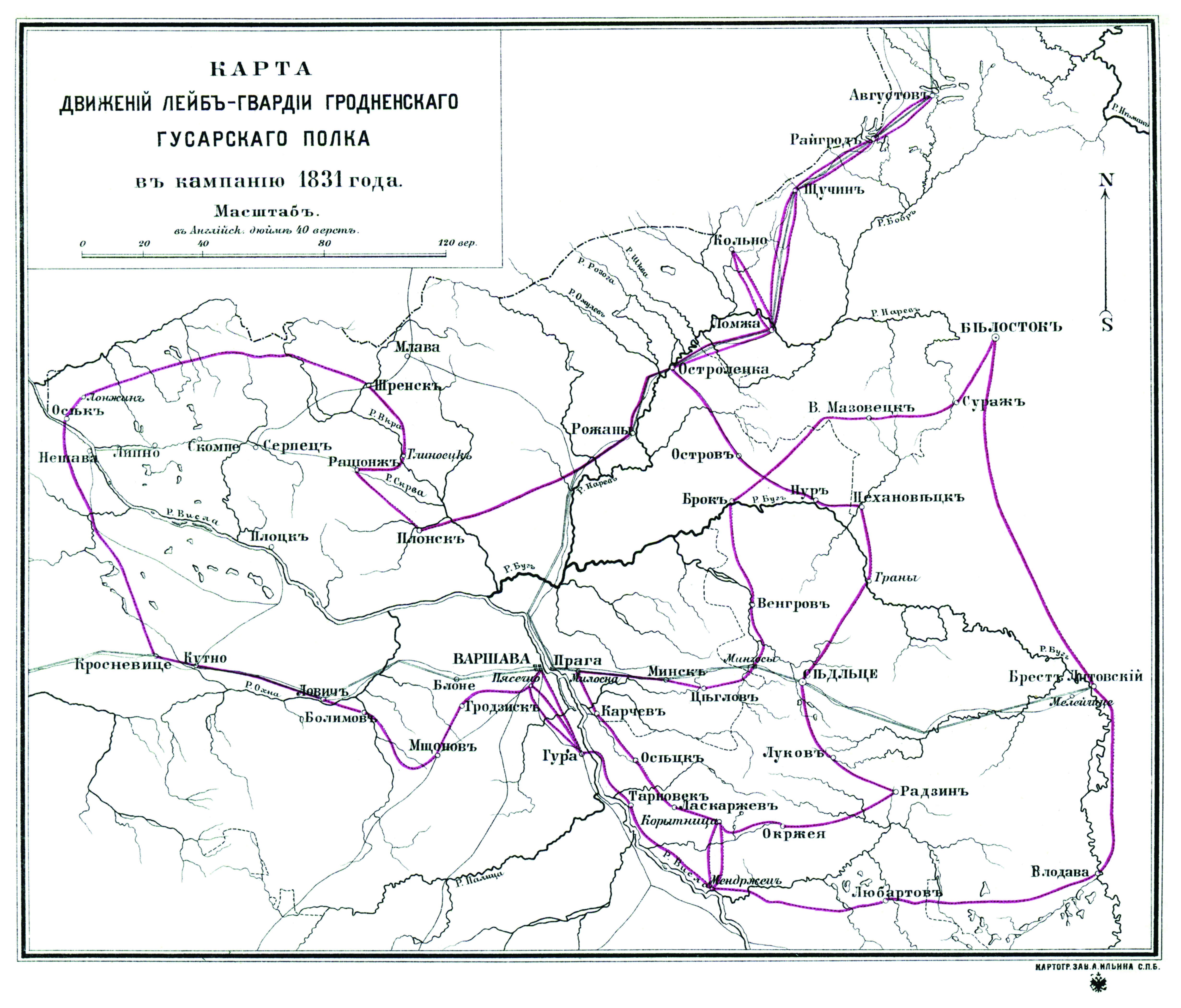Карта движений Лейб-гвардии Гродненского гусарского полка в кампанию 1831 года