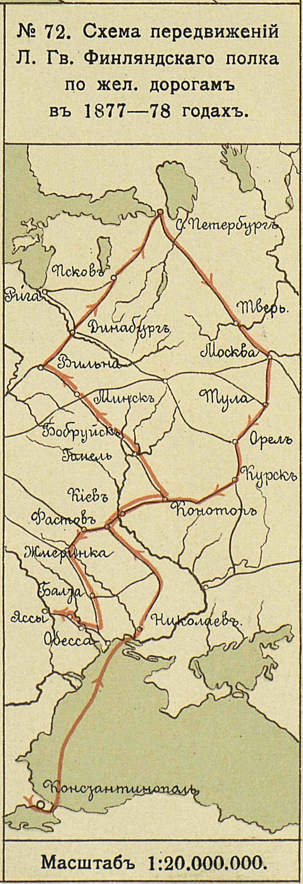 Русско-турецкая войнв 1877-1878 годов. Передвижения Лейб-Гвардии Финляндского полка по железным дорогам в 1877-78 годах