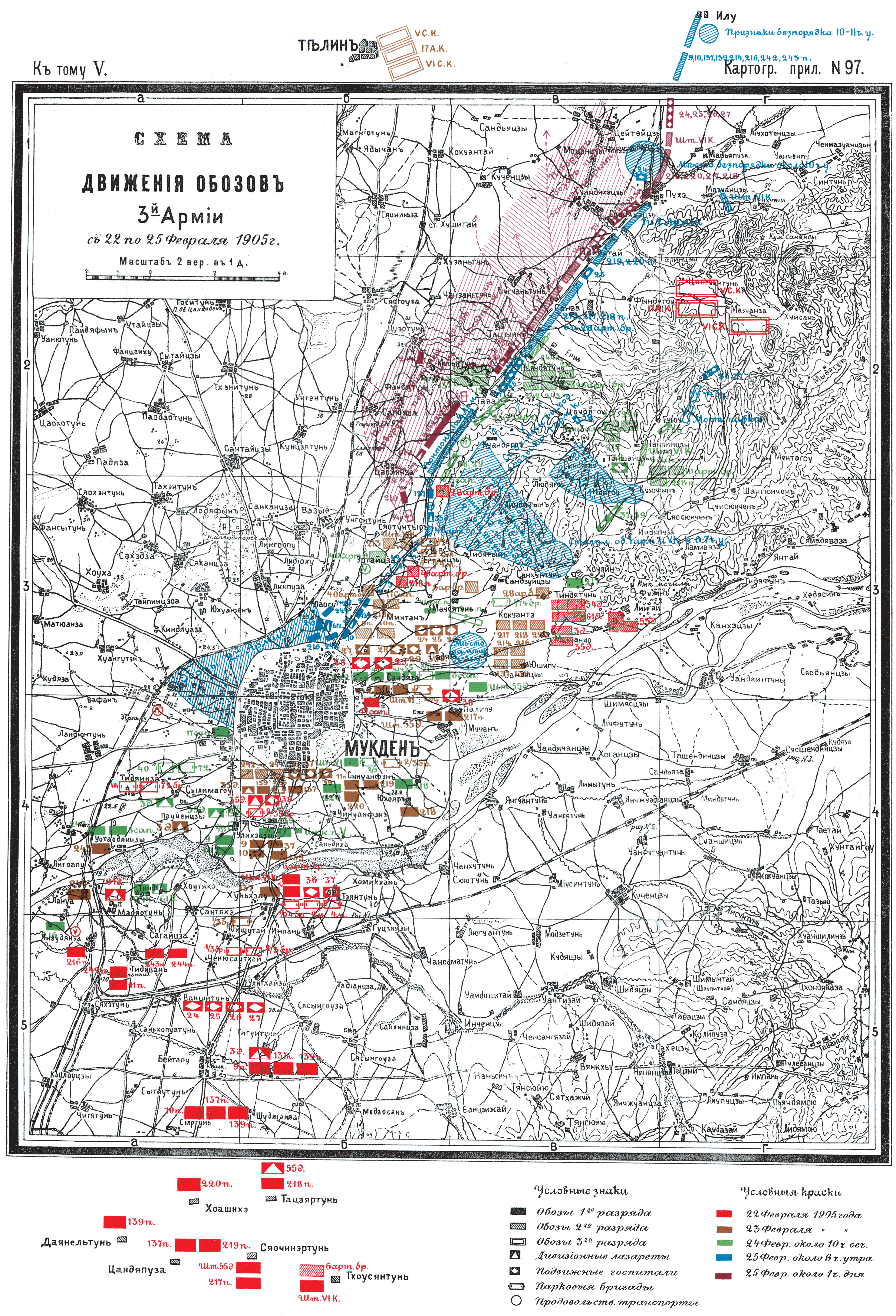 Схема движения обозов 3 Армии с 22 по 25 февраля 1905 года