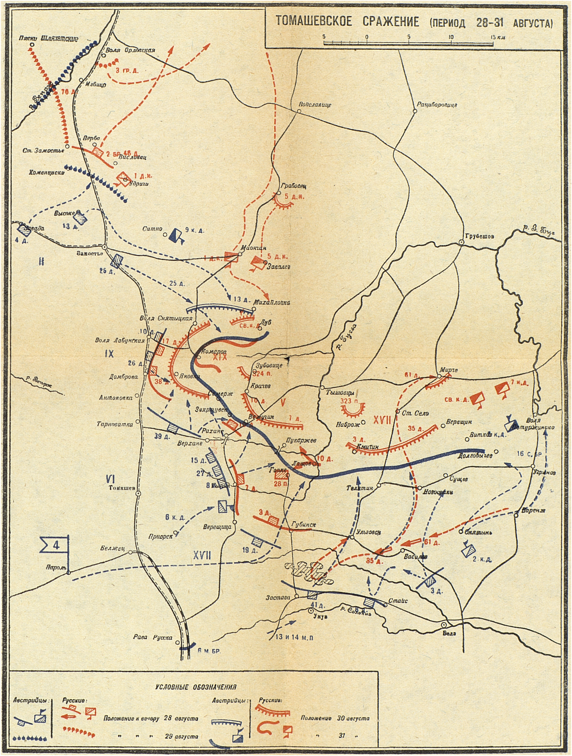 Кампания 1914 года. Русский театр. Галицийская битва. Томашовское сражение (период с 28 по 31 августа)