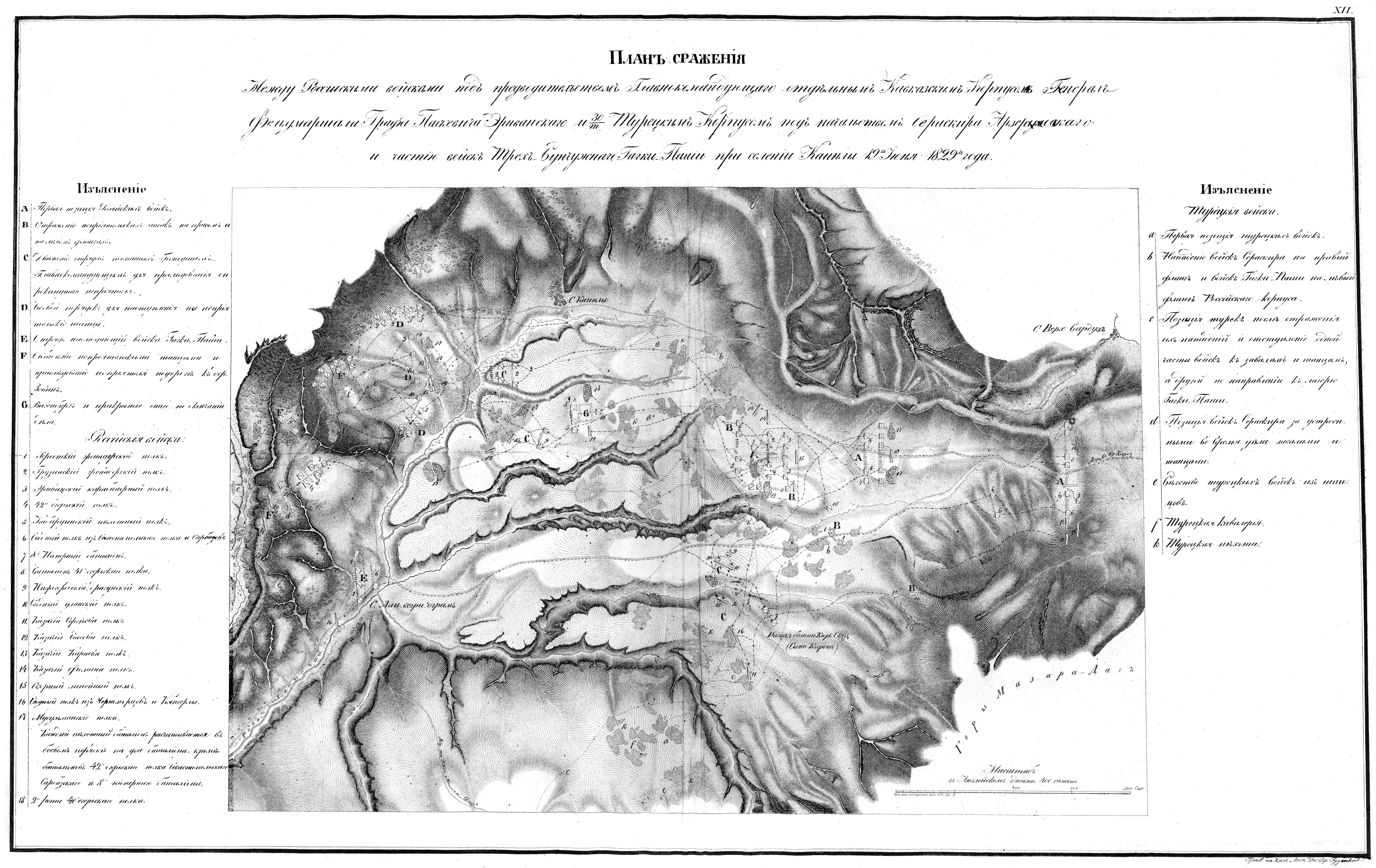 Сражение между Российскими войсками под предводительством Главнокомандующего отдельным Кавказским Корпусом Генерал Фельдмаршала Графа Паскевича Эриванского и 30 тысячным Турецким Корпусом под начальством сераскира Арзерумского и части войск Трех бунчужн