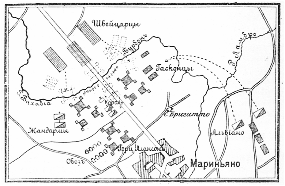 Расположение военных сил 13-14 сентября 1515 года у Мариньяно во время второй войны за Милан