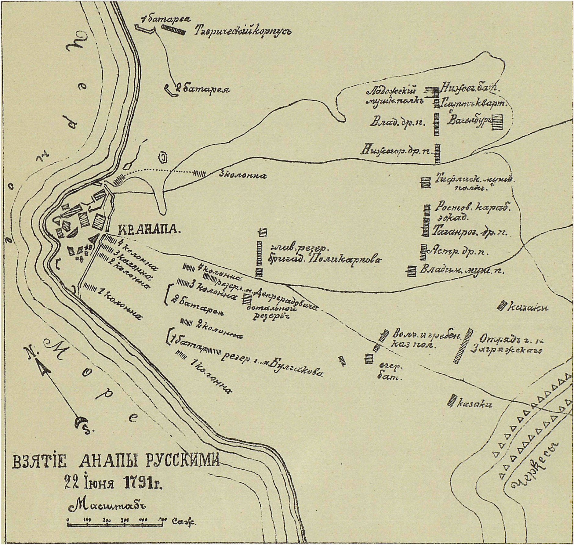 14 июня раздался первый выстрел наших орудий: в Анапу полетели снаряды с двух батарей: одна батарея бросала много бомб и ядер в крепость, другая принудила удалиться от берега стоявшие близ Анапы суда и «хорошо действовала против крепости».
