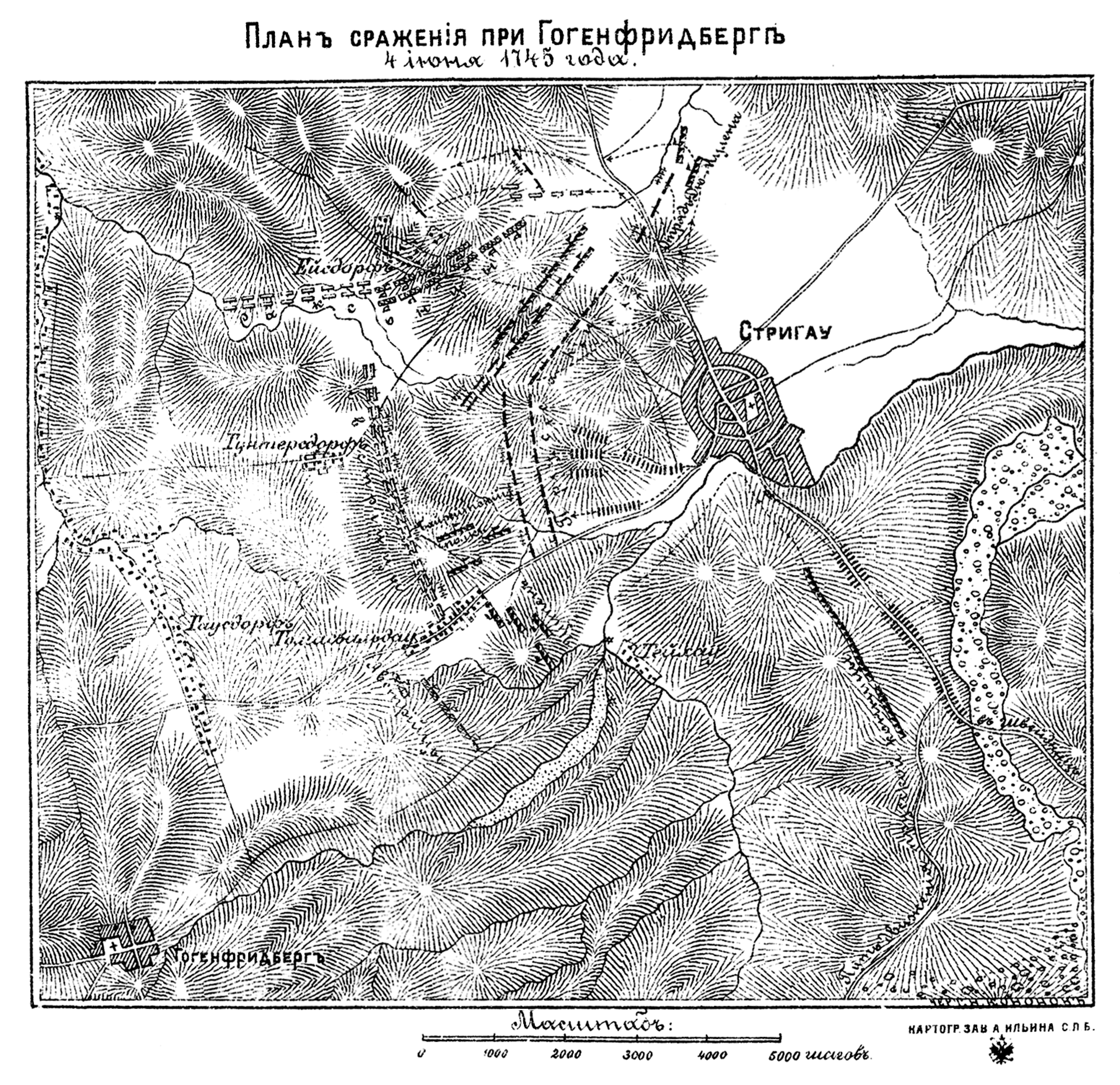 Карта-схема битвы при Фрауштадте, 13 (3) февраля 1706 года