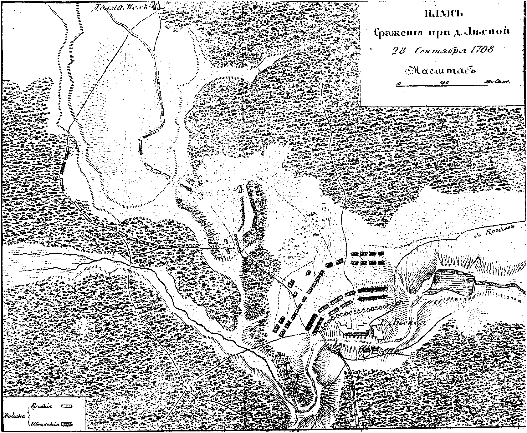 Карта-схема битвы при Фрауштадте, 13 (3) февраля 1706 года