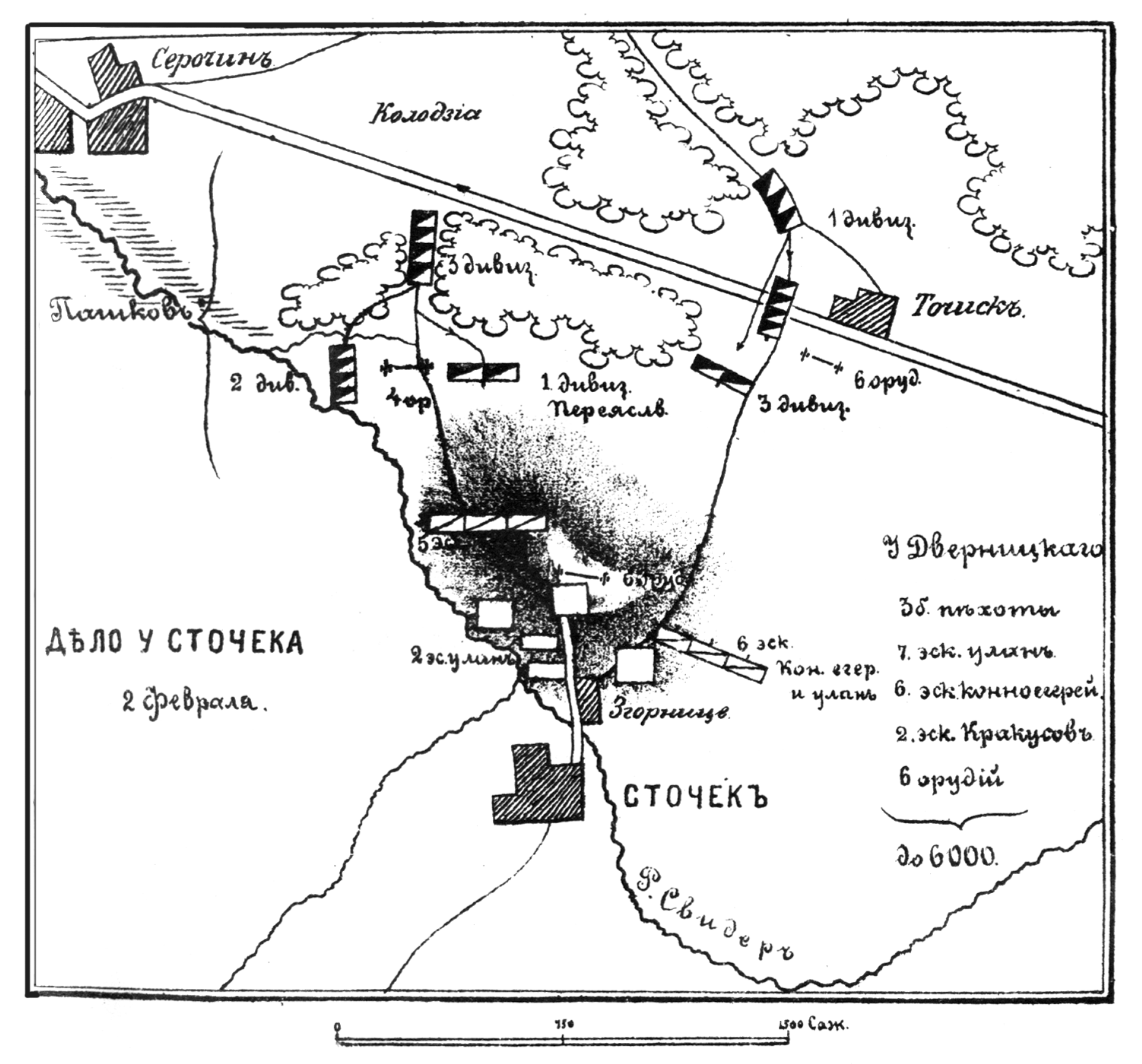 Карта-схема битвы при Фрауштадте, 13 (3) февраля 1706 года