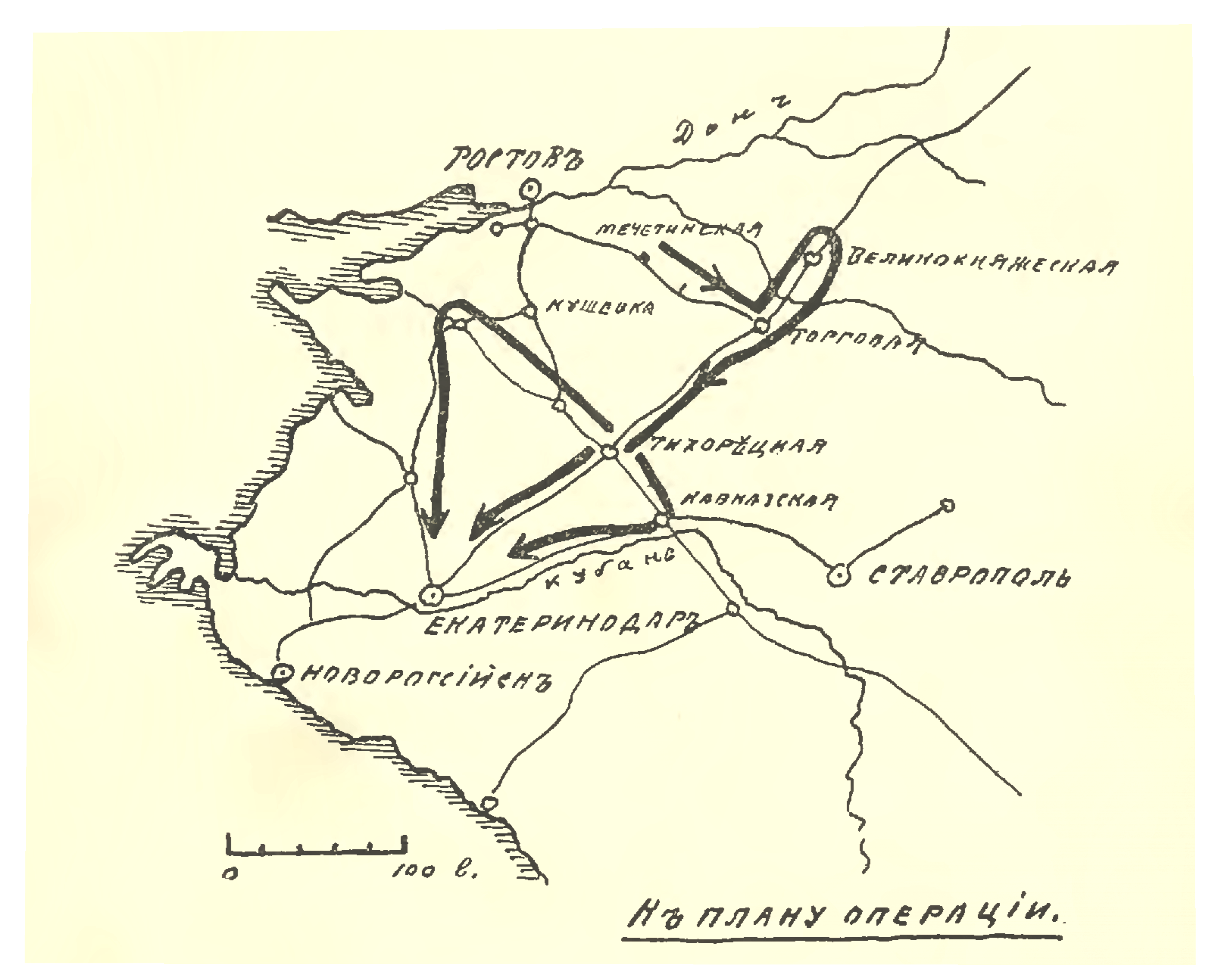 К плану операции. (Взятие Екатеринодара)