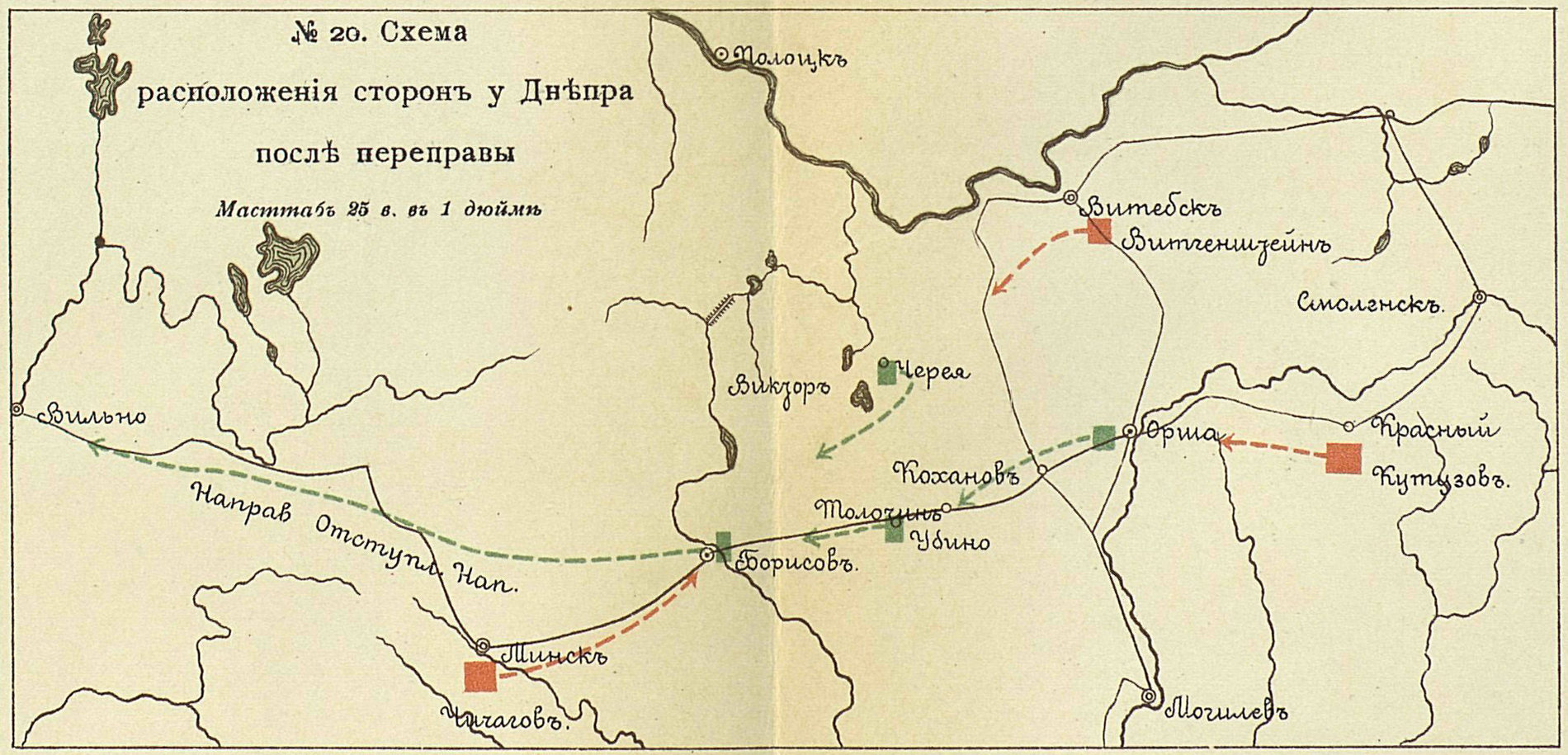 Отечественная война 1812 года. Расположение сторон у Днепра после переправы