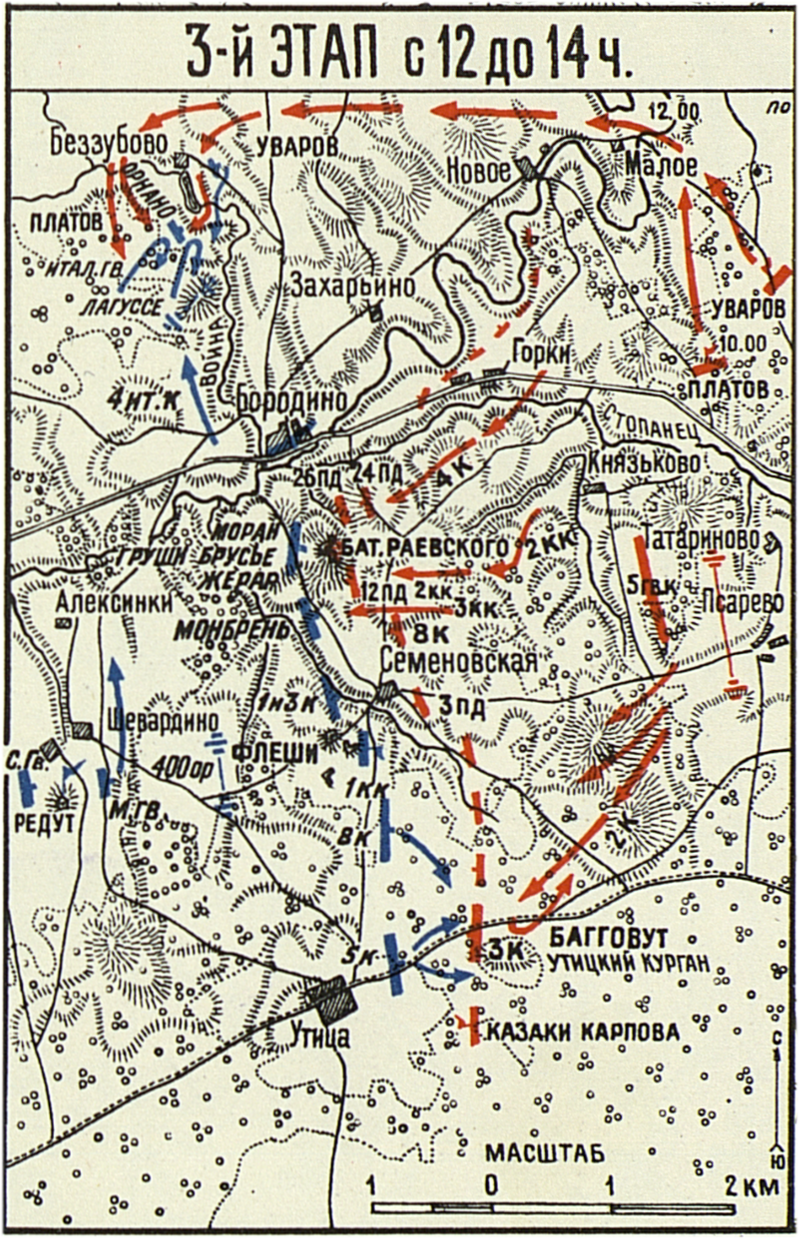 Третий этап Бородинского сражения с 12 до 14 ч.