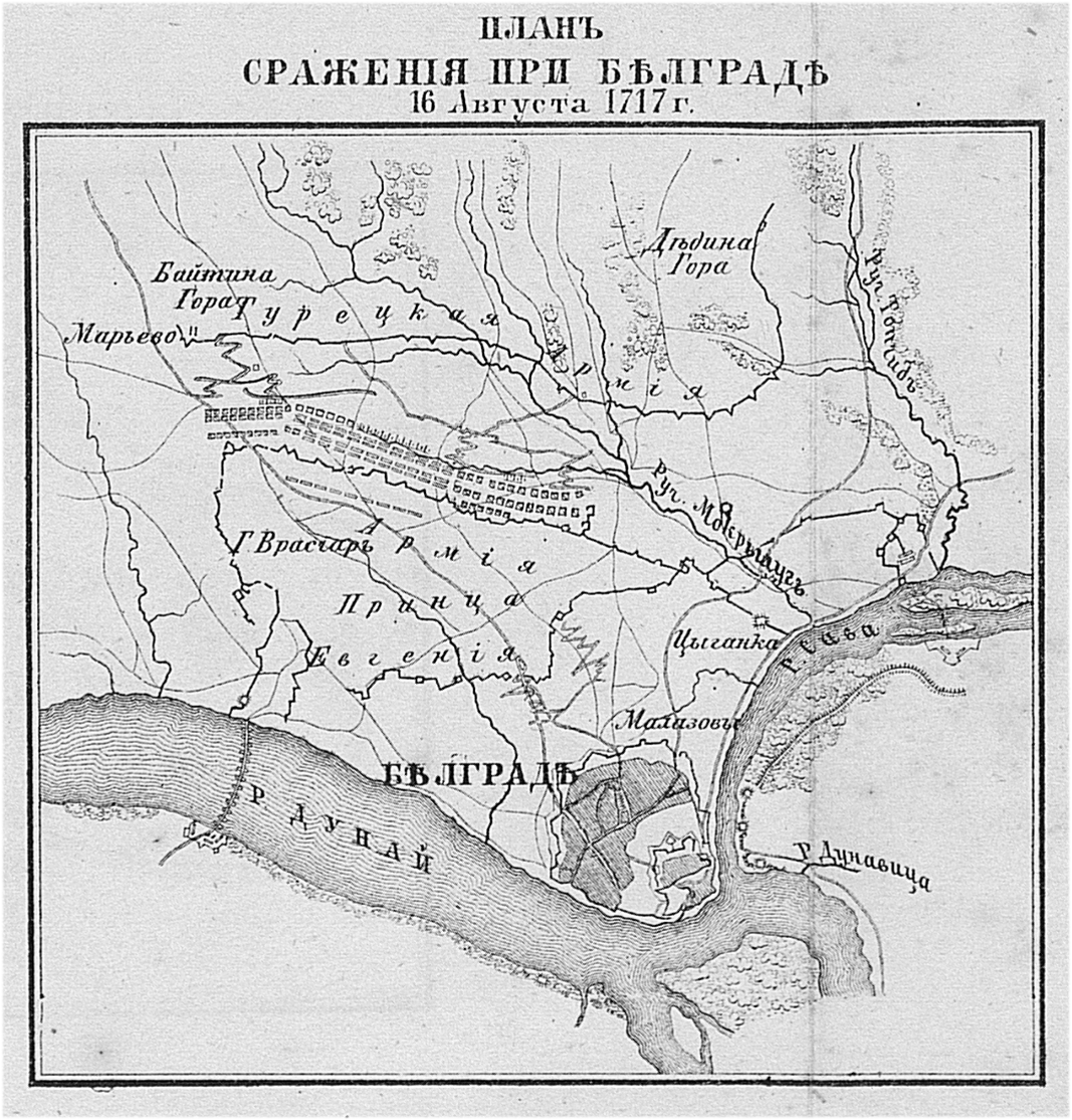 Карта-схема битвы при Фрауштадте, 13 (3) февраля 1706 года