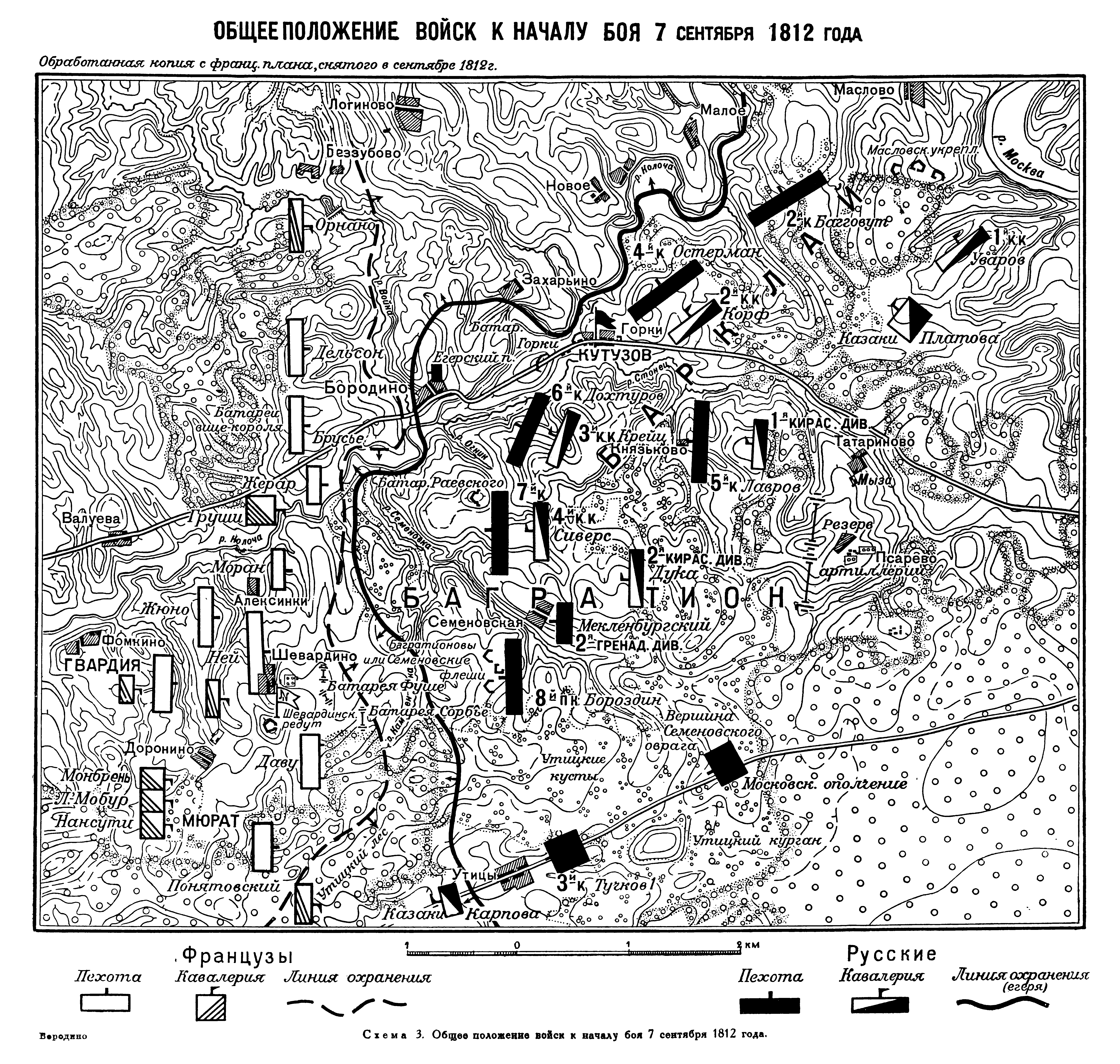 Общее положение войск к началу боя 7 сентября 1812 года