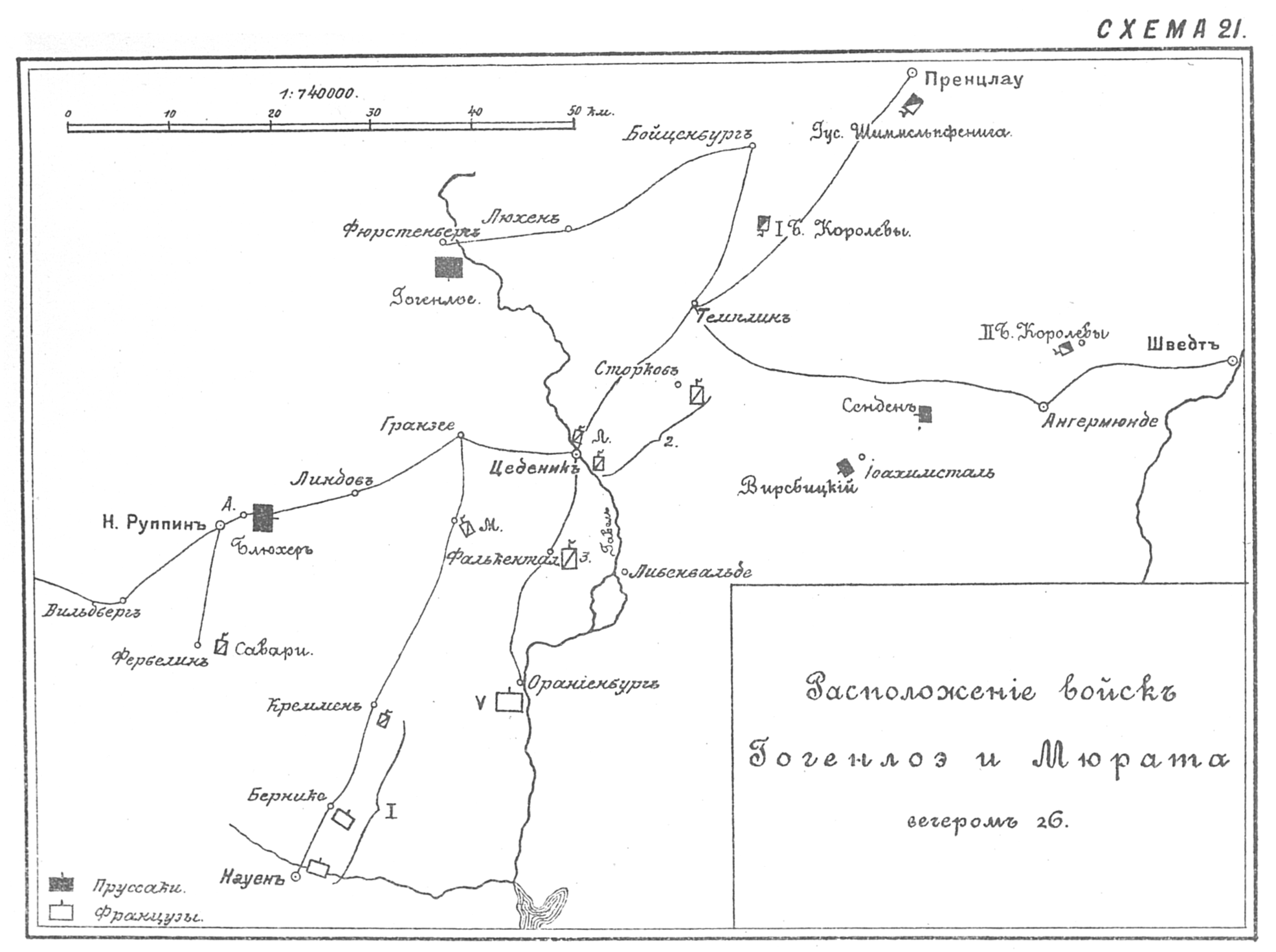 Расположение войск Гогенлоэ и Мюрата вечером 26 октября