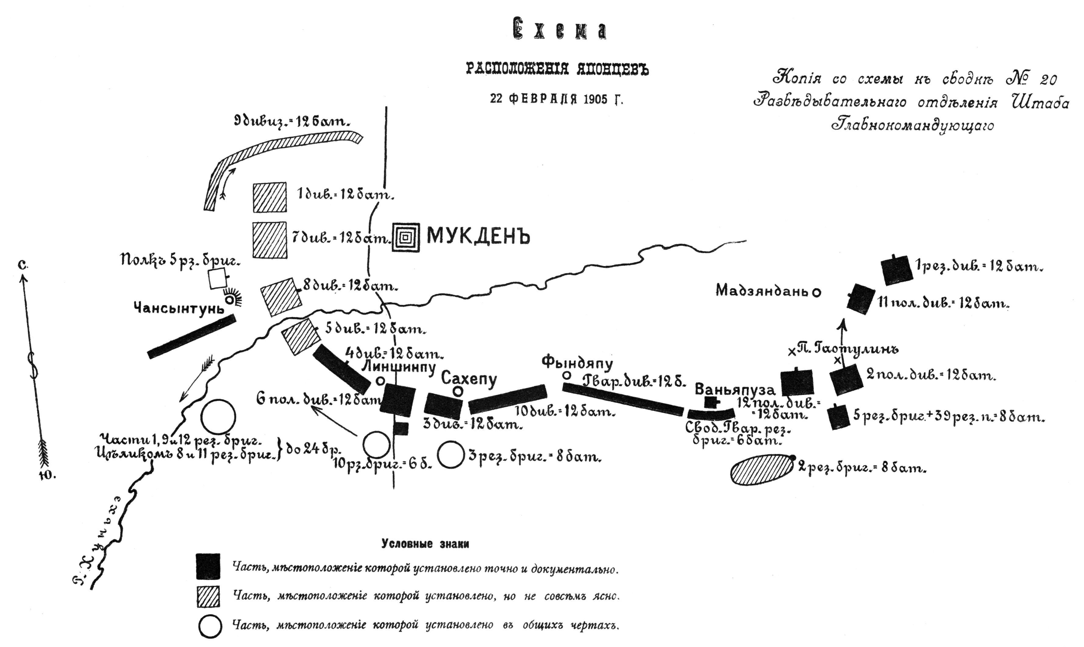 Схема расположения японцев 22 февраля 1905 года