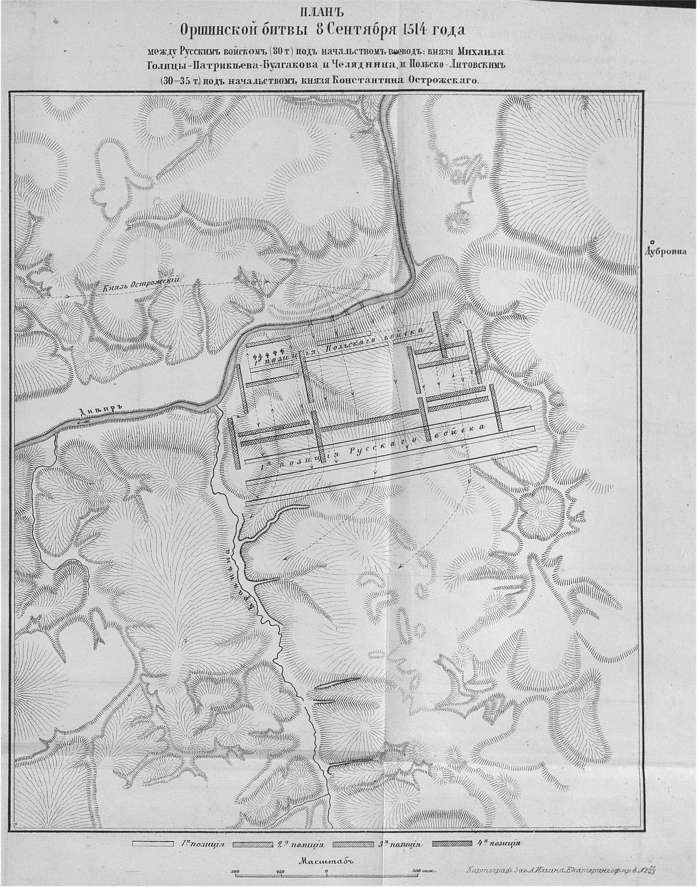 Оршинская битва 8 сентября 1514 года между русским войском (80 тысяч), под начальством воевод: князя Михаила Голицы-Патрикеева-Булгакова и Челяднина, и Польско-Литовским (30-35 тысяч) под начальством князя Константина Острожского