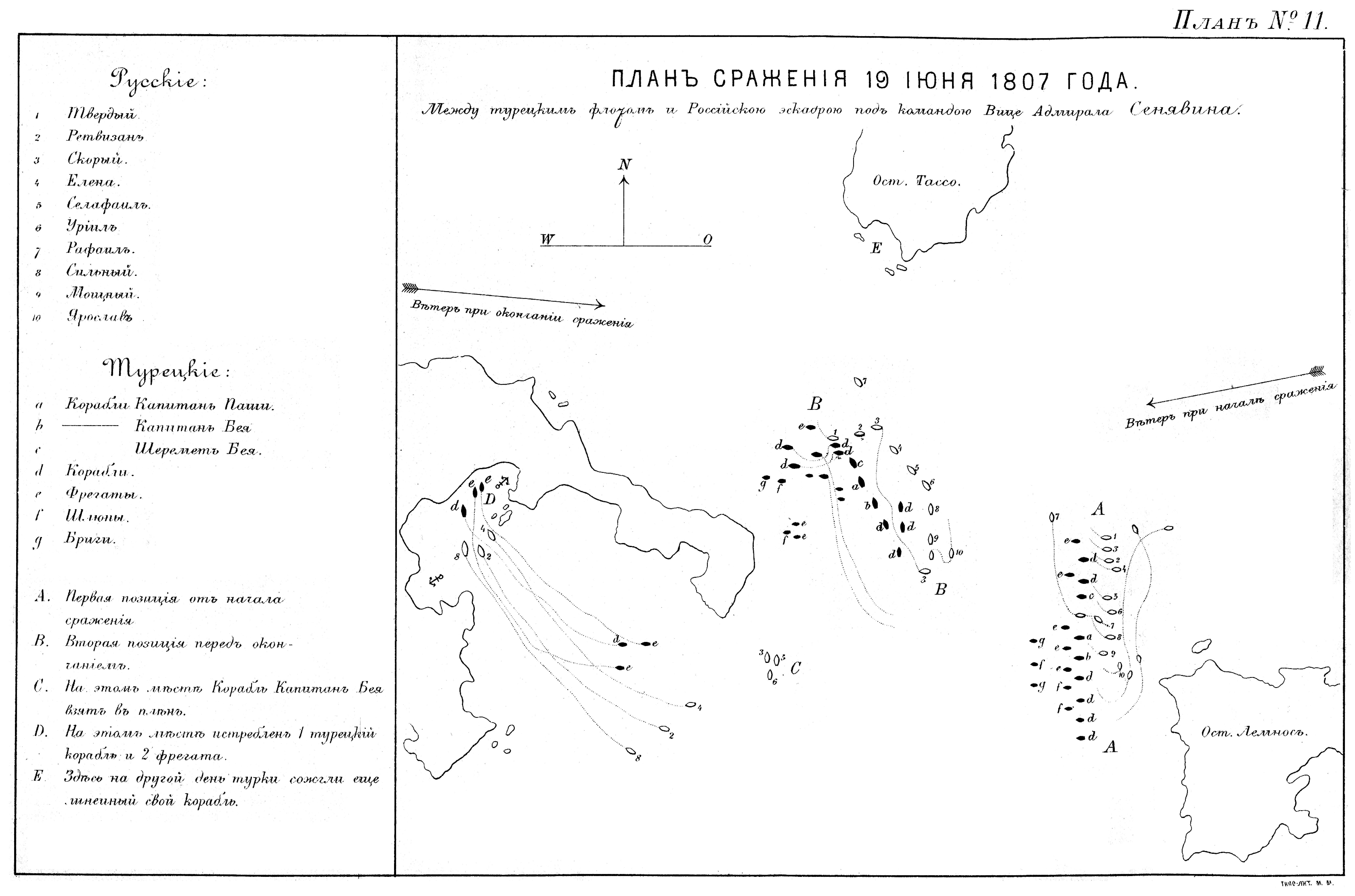 Сражение 19 июня 1807 года между турецким флотом и Российской эскадрой под командой Вице Адмирала Сенявина