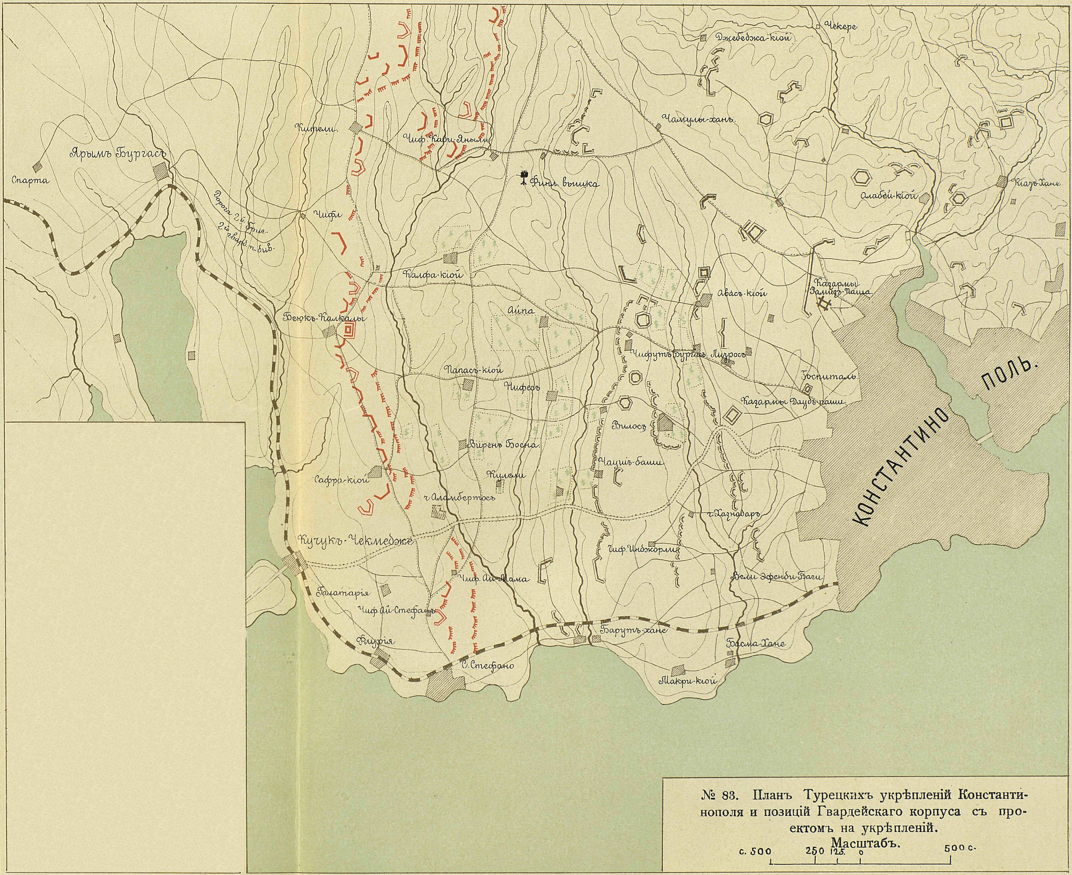 Русско-турецкая война 1877-1878 годов. Турецкие укрепления Константинополя и позиции Гвардейского корпуса с проектом укреплений