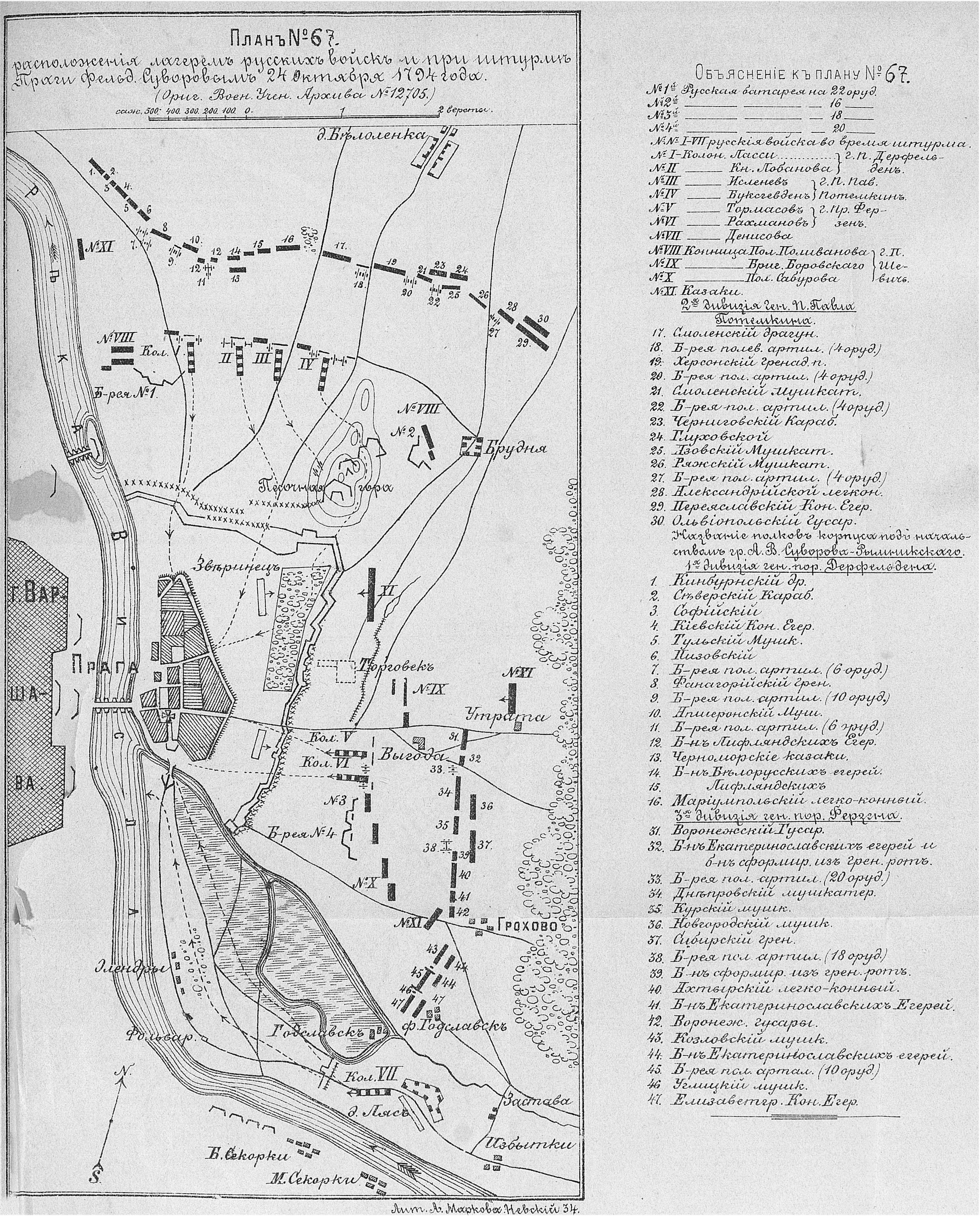 Расположение русских войск лагерем и при штурме Праги фельдмаршалом Суворовым 24 октября 1794 года