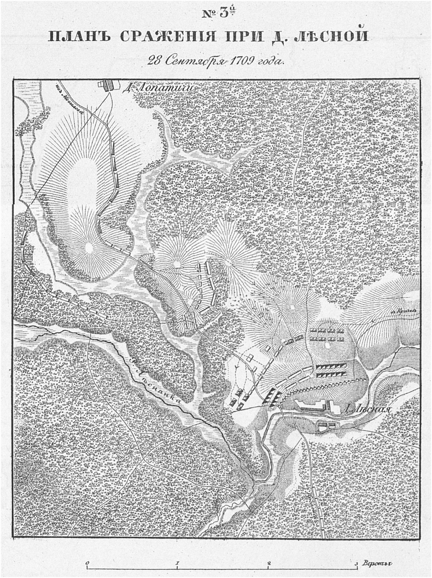 Карта-схема битвы при Фрауштадте, 13 (3) февраля 1706 года
