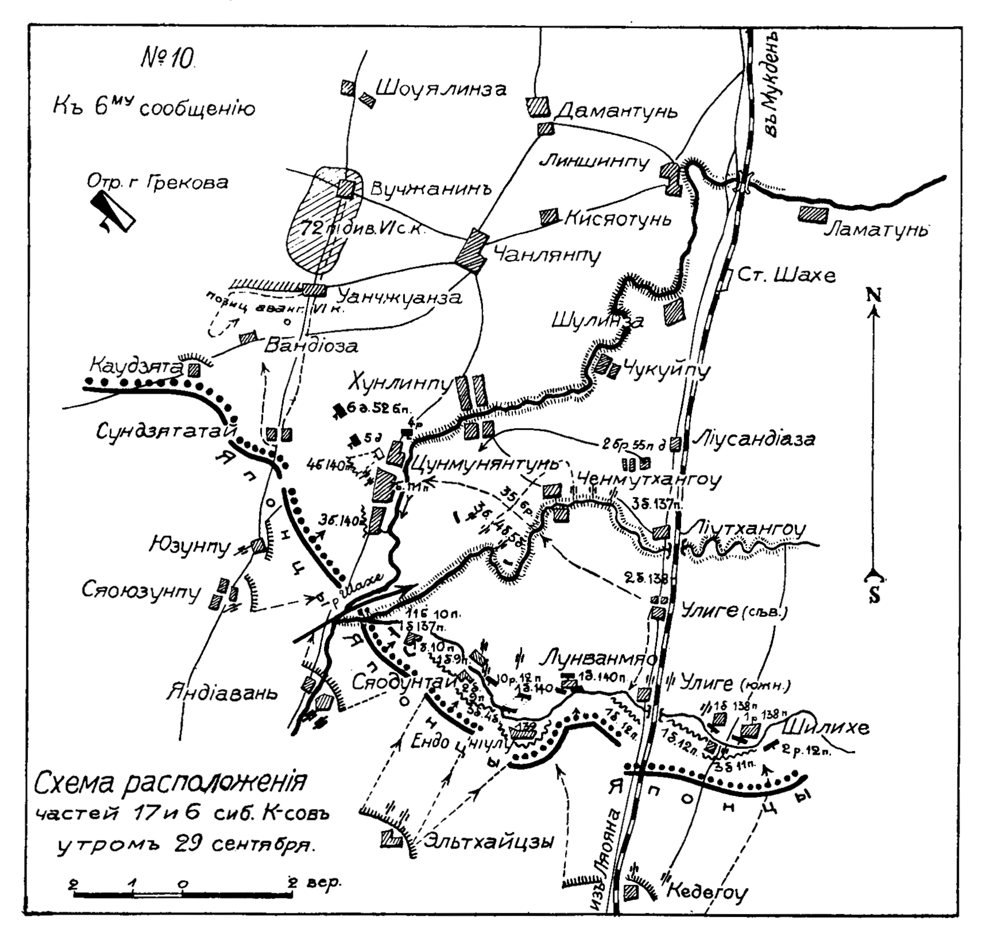 Схема расположения частей 17 и 6 Сибирских корпусов утром 29 сентября