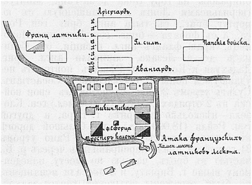 Карта-схема битвы при Фрауштадте, 13 (3) февраля 1706 года