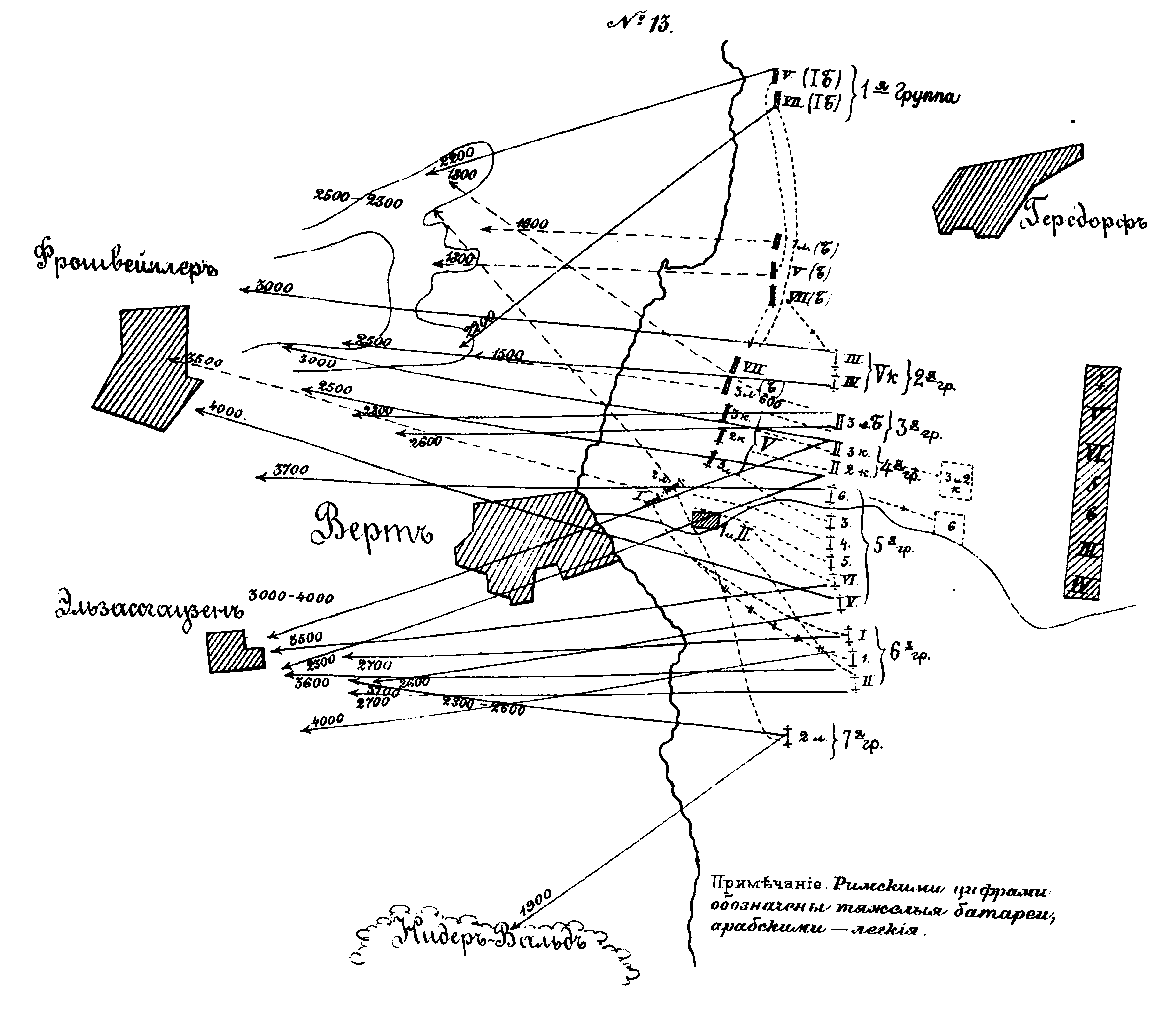 Детальная схема атаки V корпусом высот правого берега Зауера