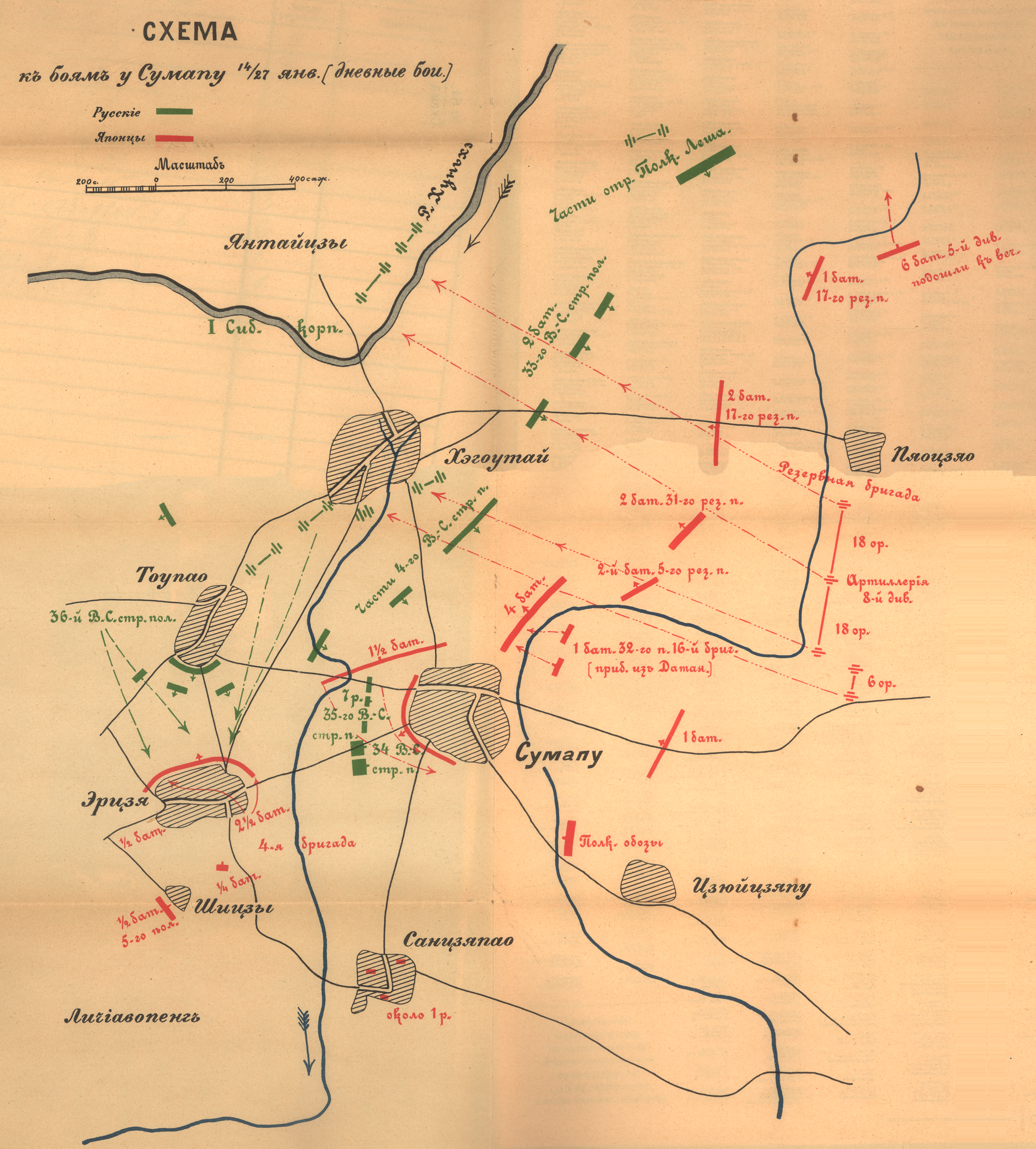 Схема к боям у Сумапу 14/27 января 1905 года (дневные бои)