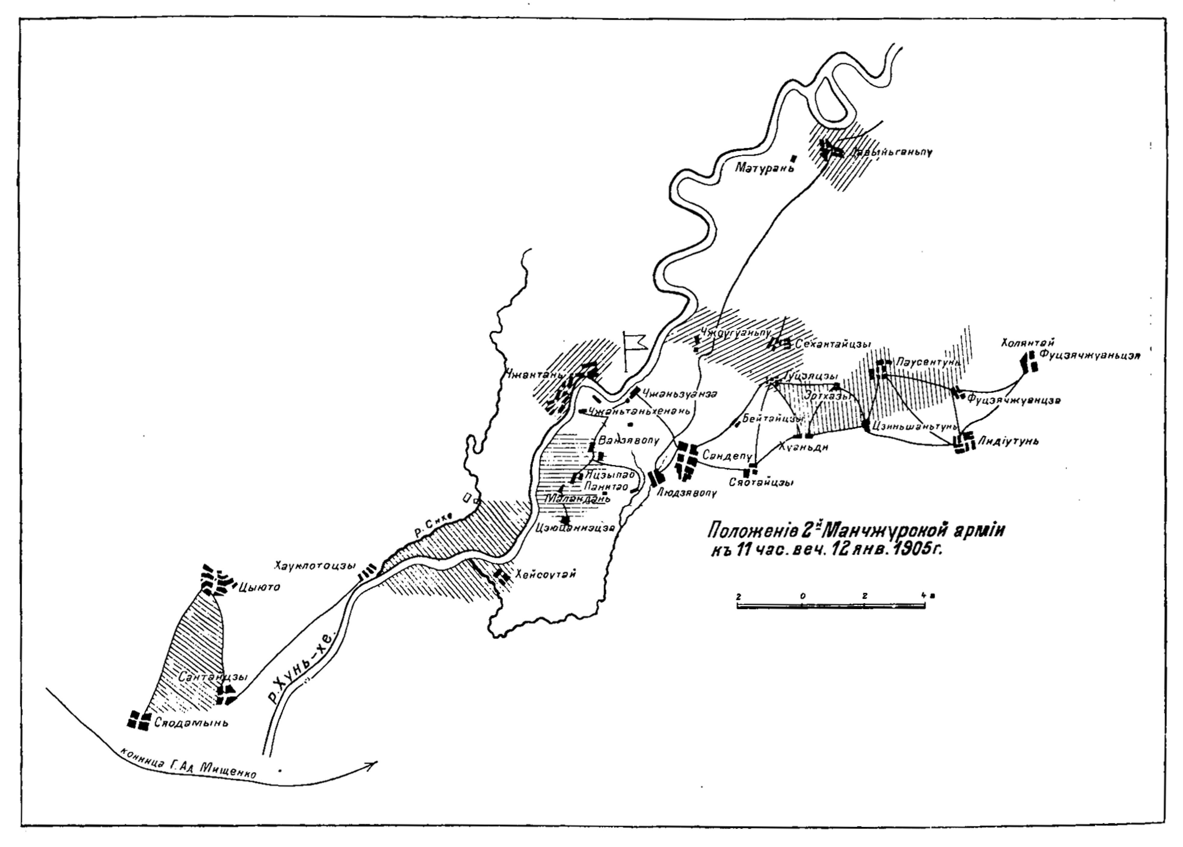 Положение 2-й Манчжурской армии к 11 часам вечера 12 января 1905 года