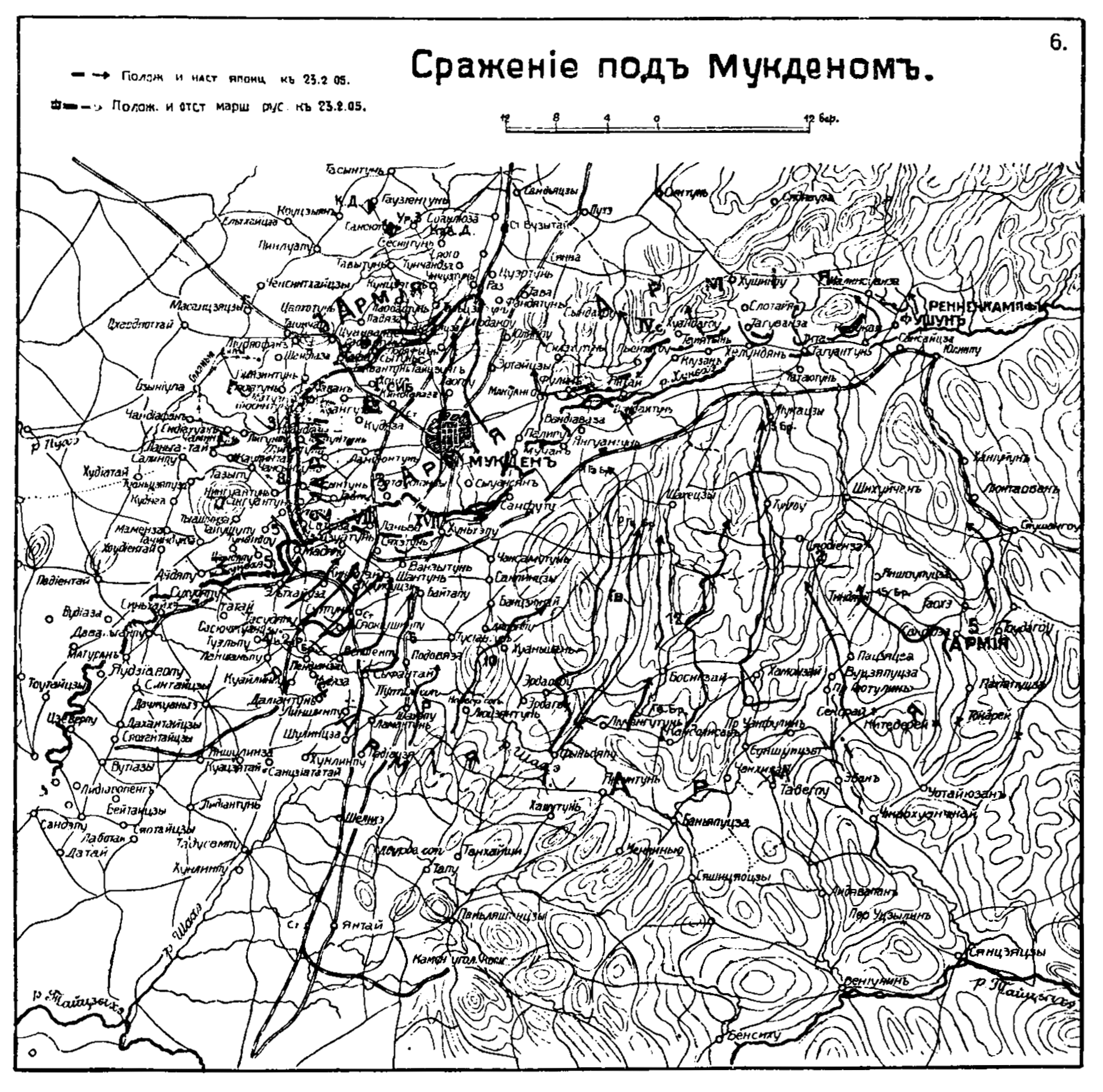 Сражение под Мукденом. Положение 23 февраля 1905 года. Наступление японцев и маршрут отступления русских