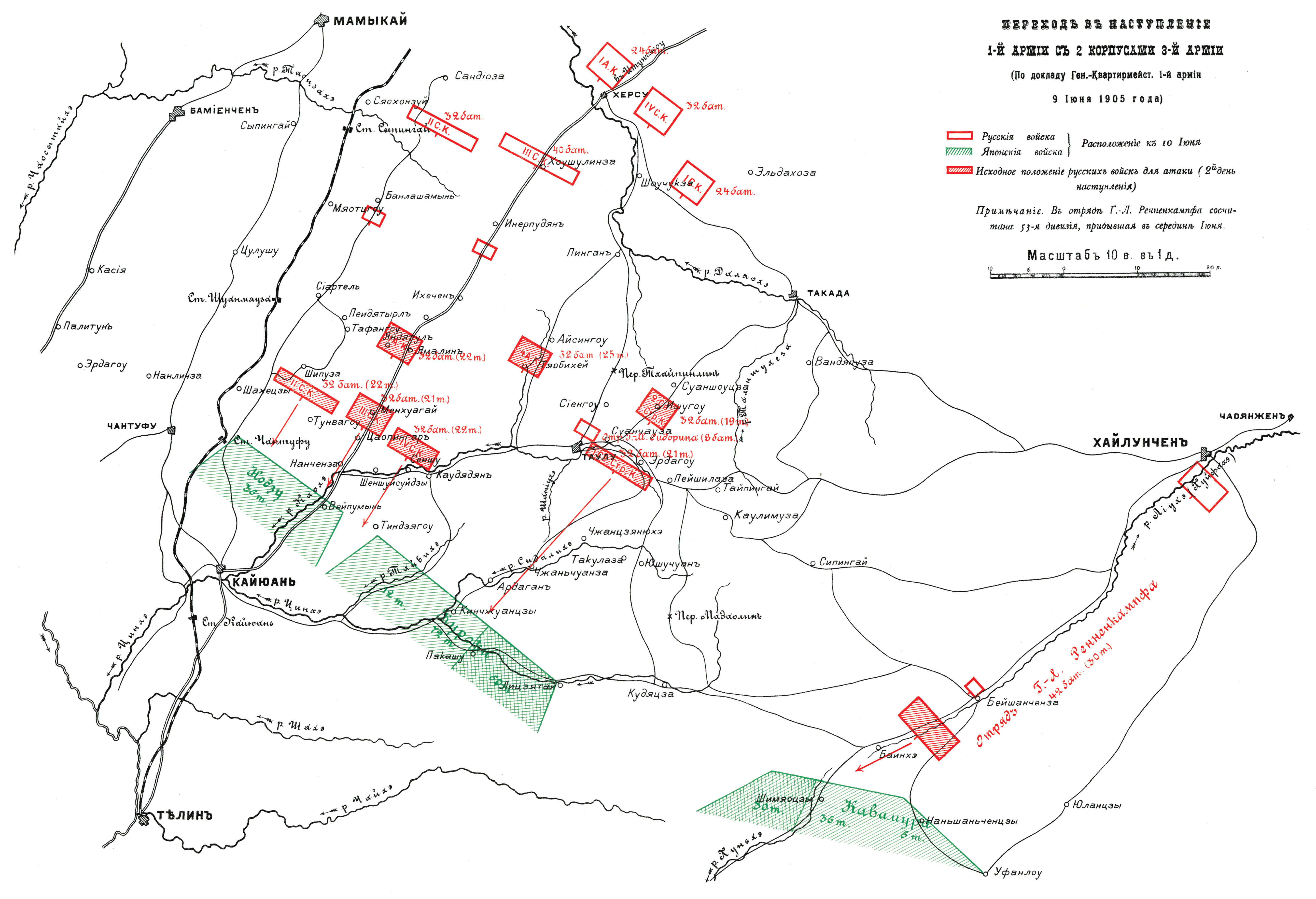Переход в наступление 1 армии с двумя корпусами 3 армии, по докладу Генерала-Квартирмейстера 1армии 9 июня 1905 года