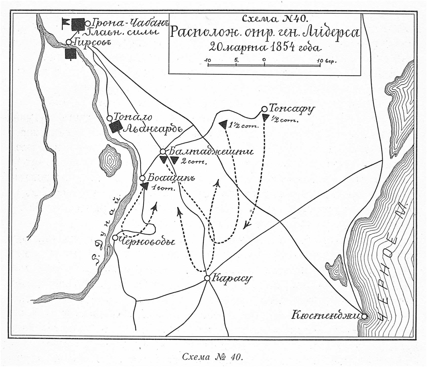 Расположение отряда генерала Либерса 20 марта 1854 года