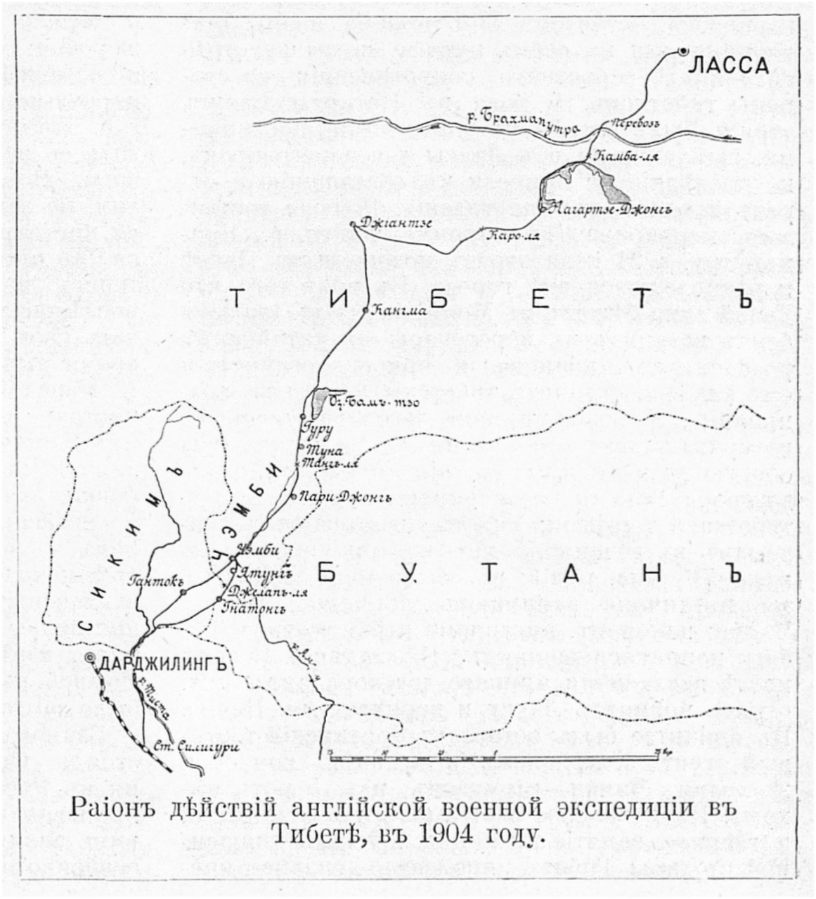 Район действий английской военной экспедиции в Тибете, в 1904г.