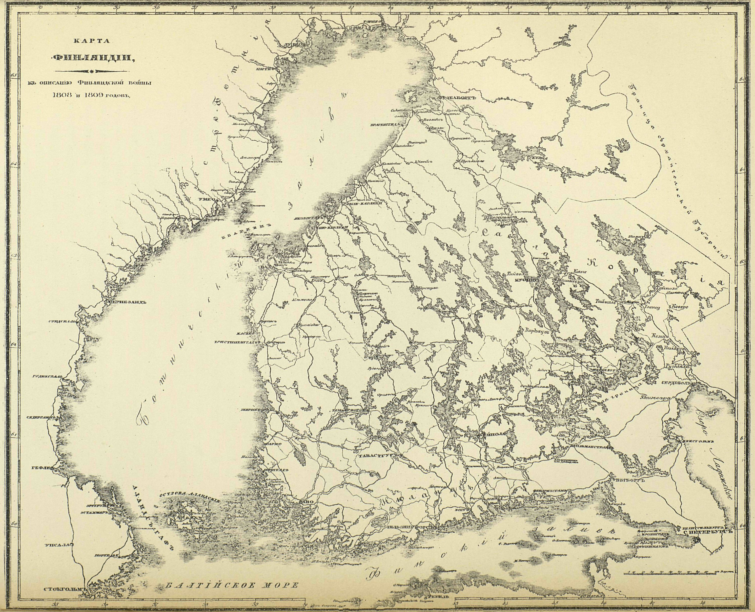 Карта Финляндии, к описанию Финляндской войны 1808 и 1809 годов